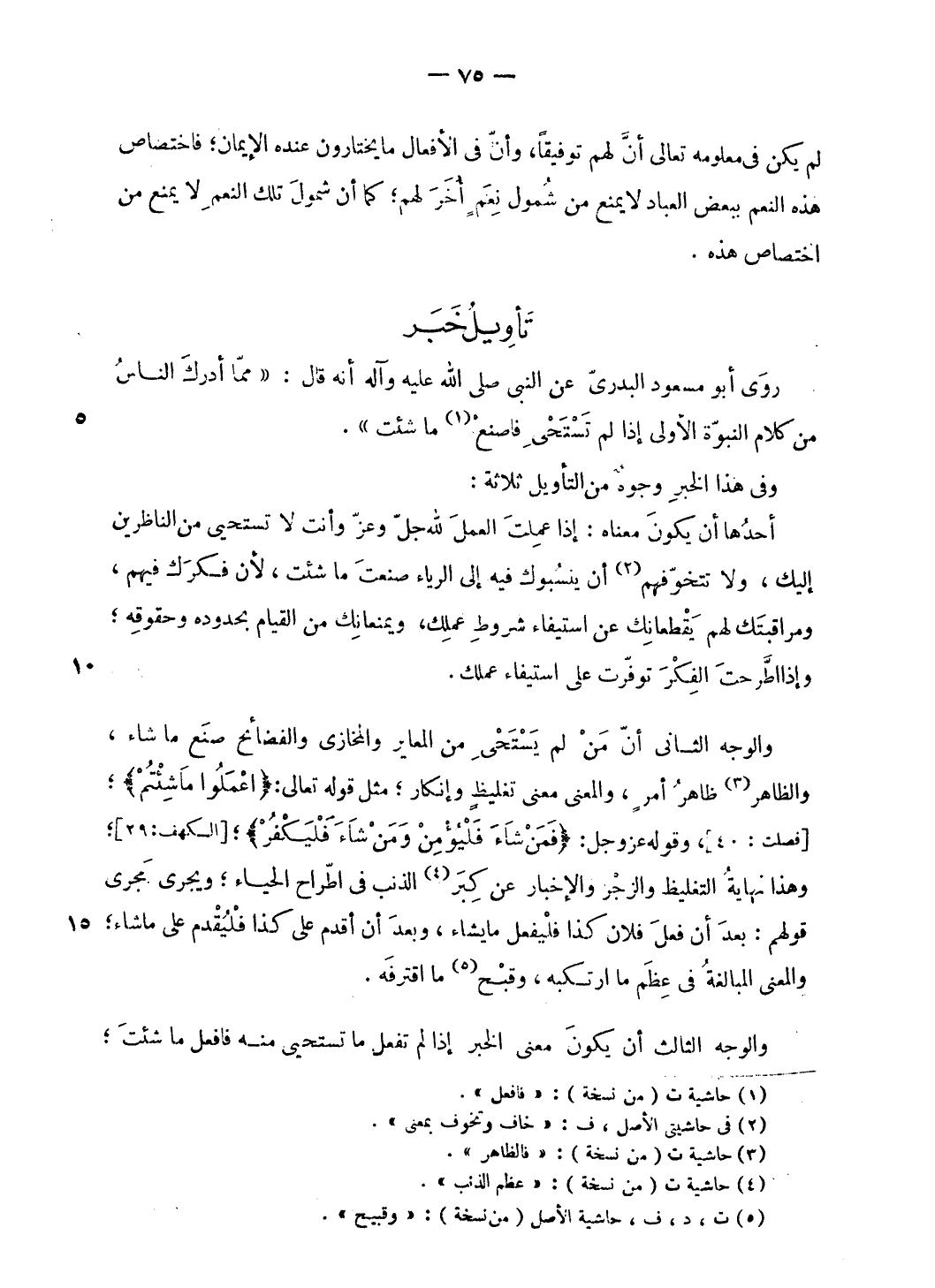 تأويل خبر [«ممّا أدرك الناس من كلام النبوّة الأولى إذا لم تستحى فاصنع ما شئت».]
