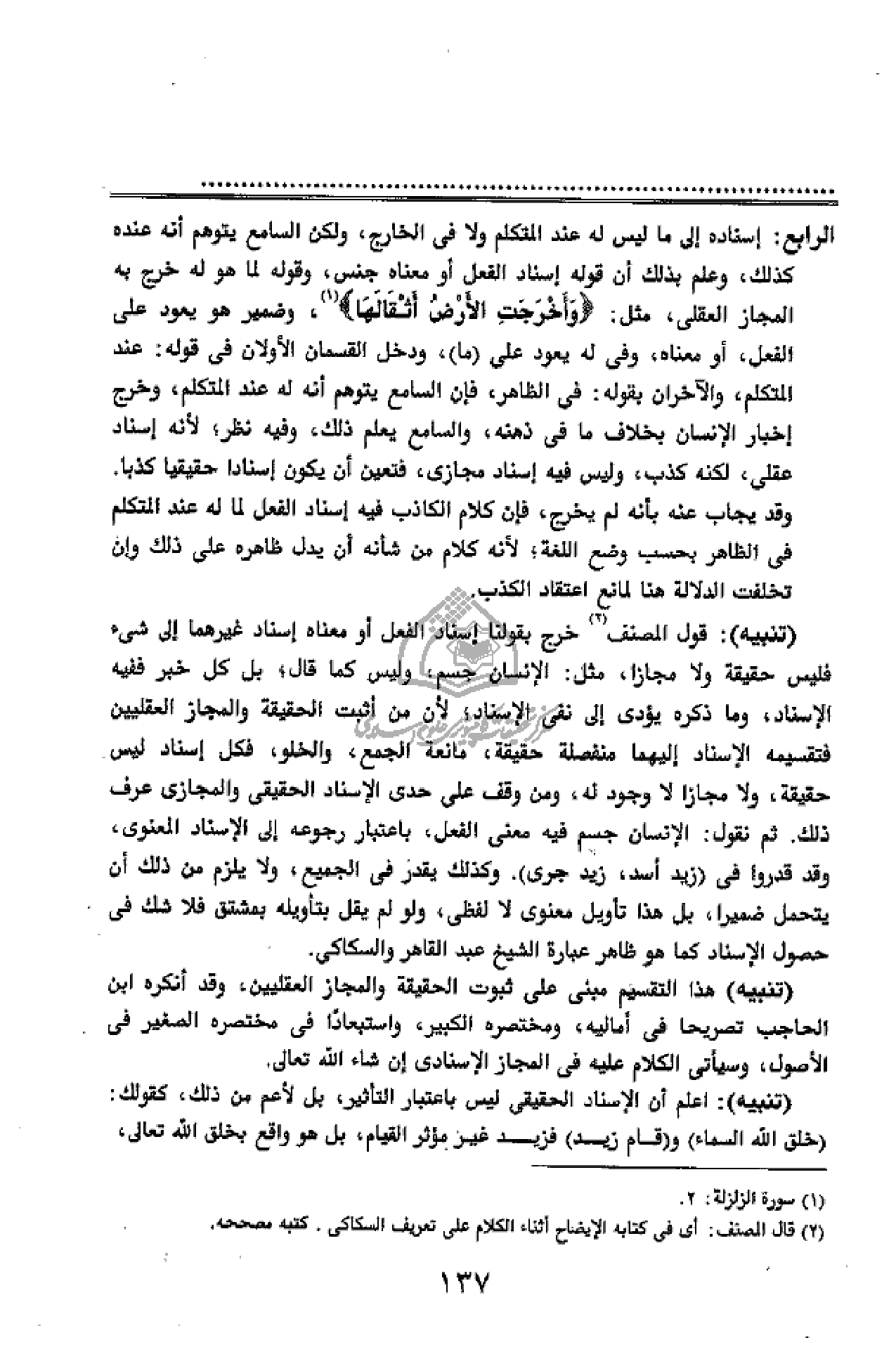 (¬2) قال المصنف: أى فى كتابه الإيضاح أثناء الكلام على تعريف السكاكى. كتبه مصححه.