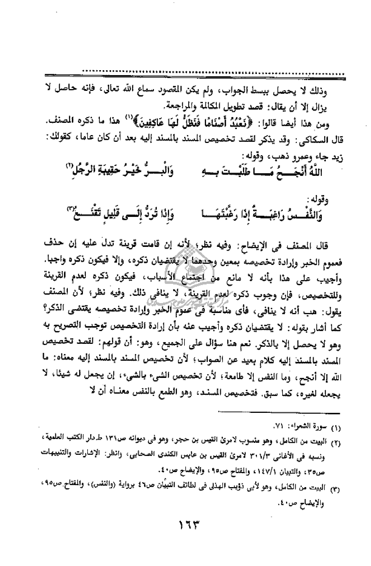(¬3) البيت من الكامل، وهو لأبى ذؤيب الهذلى فى لطائف التبيان ص 46 برواية (والنفس)، والمفتاح ص 95، والإيضاح ص 40.
