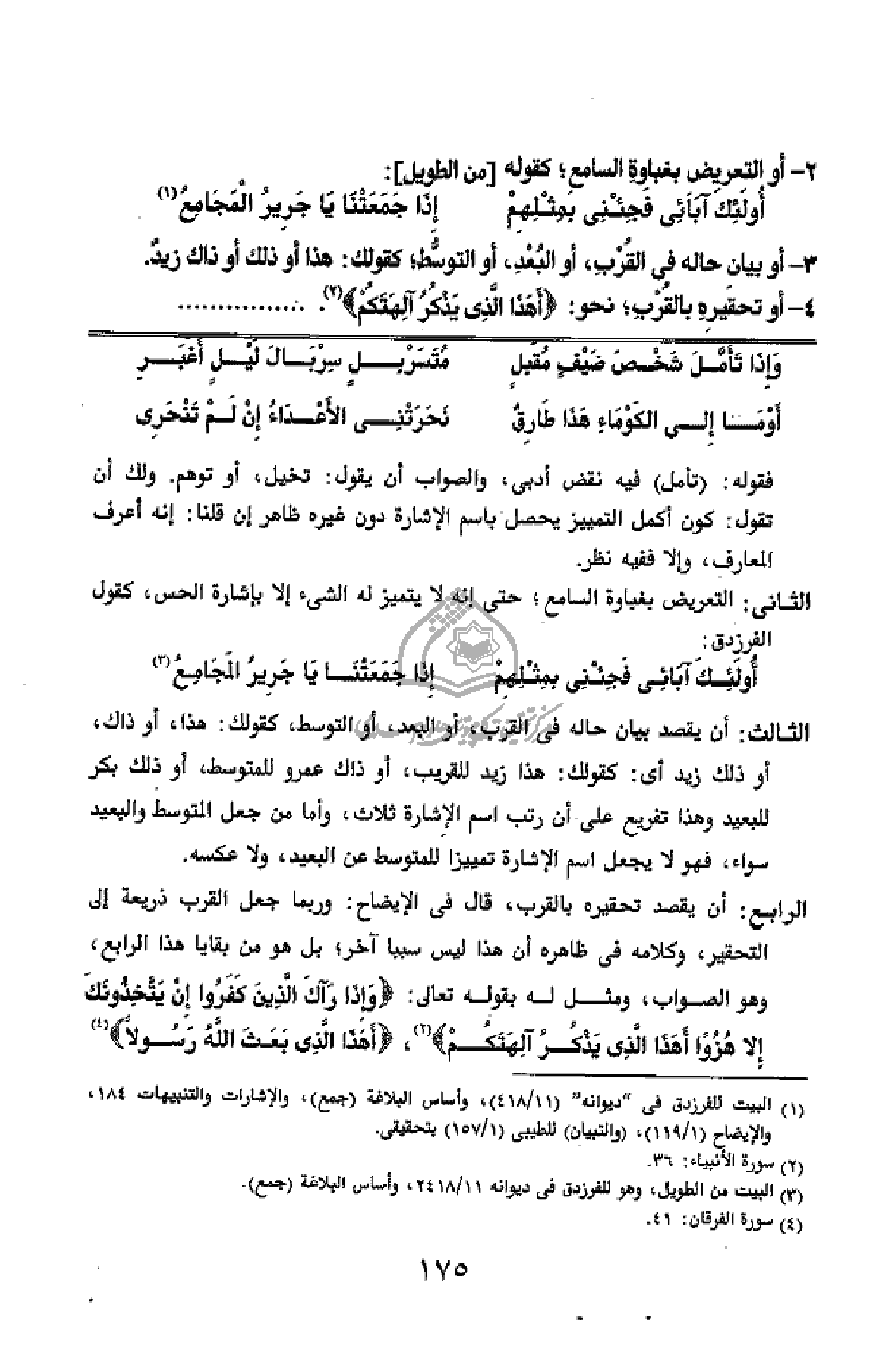 (¬1) البيت للفرزدق فى ديوانه (11/ 418)، وأساس البلاغة (جمع)، والإشارات والتنبيهات 184، والإيضاح (1/ 119)، (والتبيان) للطيبى (1/ 157) بتحقيقى.