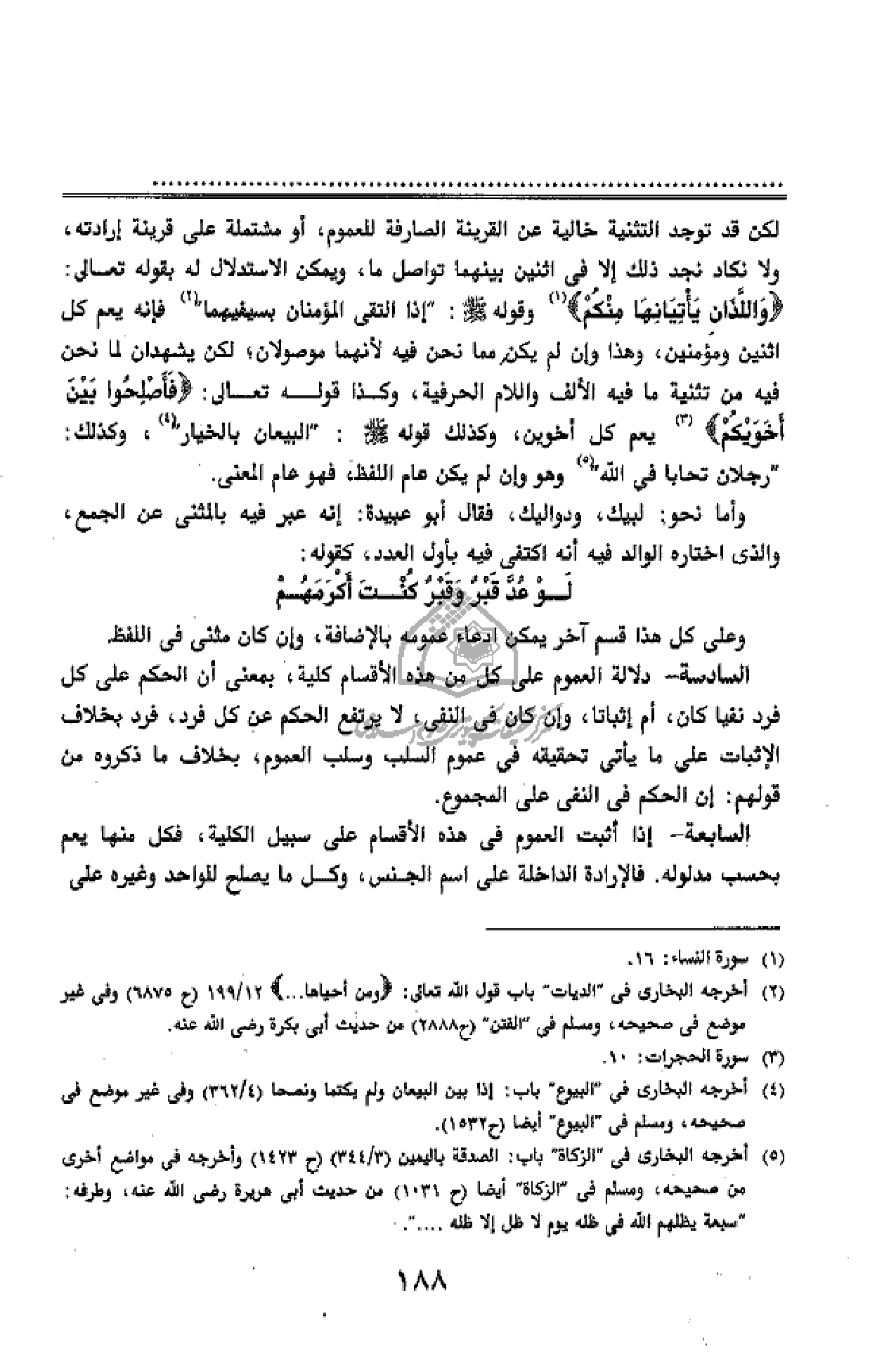 وعلى كل هذا قسم آخر يمكن ادعاء عمومه بالإضافة، وإن كان مثنى فى اللفظ.