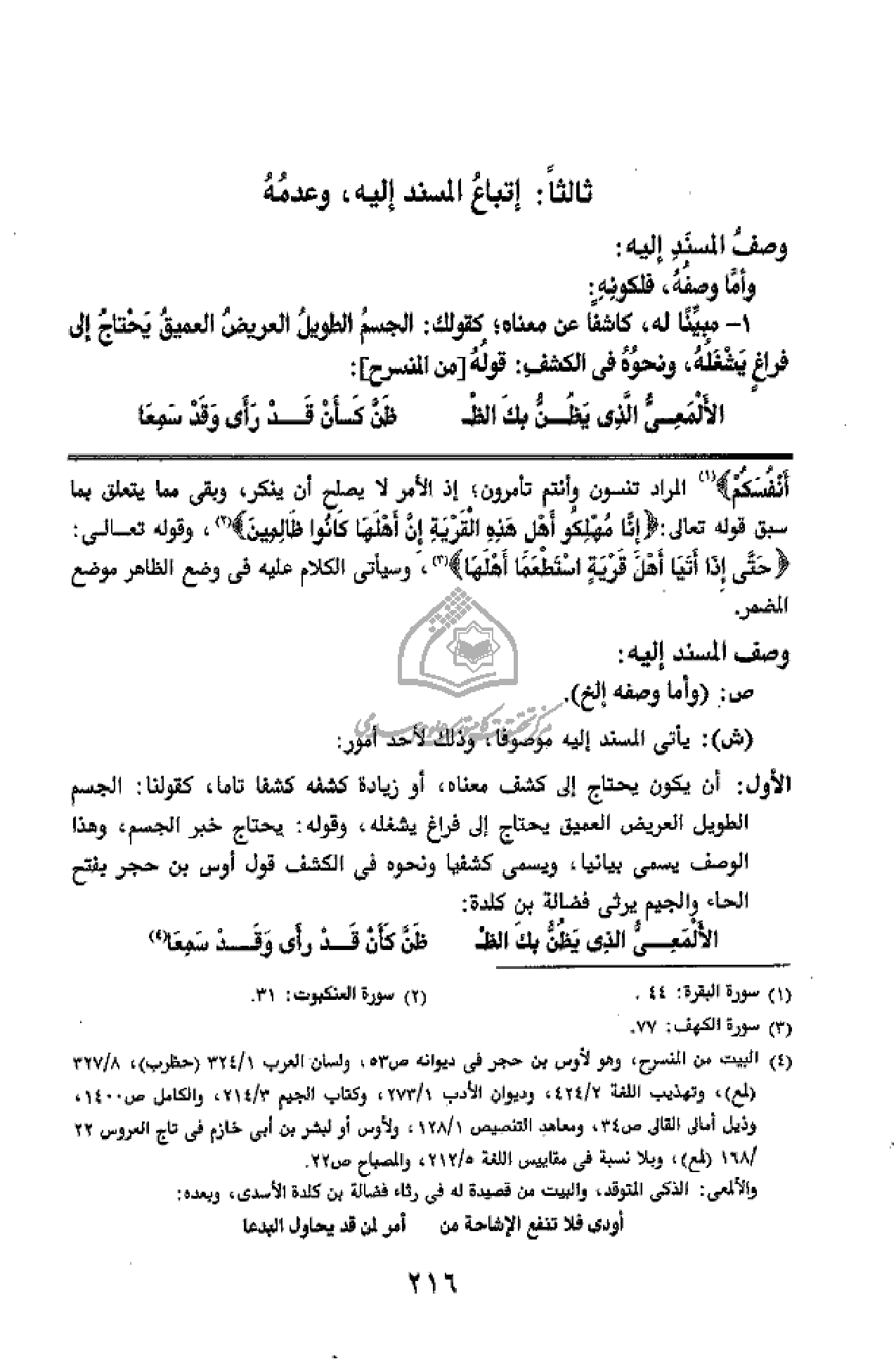 ثالثا: إتباع المسند إليه، وعدمه وصف المسند إليه: