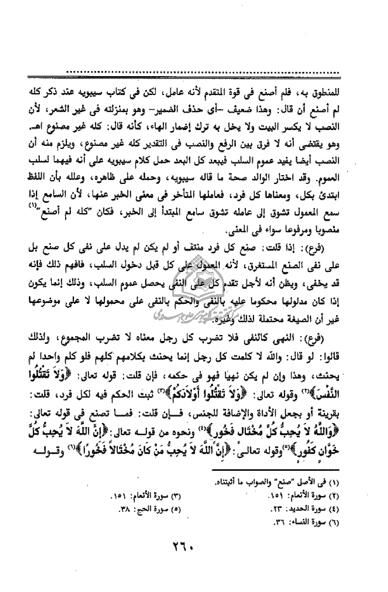 (فرع): إذا قلت: صنع كل فرد منتف أو لم يكن لم يدل على نفى كل صنع بل على نفى الصنع المستغرق، لأنه المعمول على كل قبل دخول السلب، فافهم ذلك فإنه قد يخفى، ويظن أنه لأجل تقدم كل على النفى يحصل عموم السلب، وذلك إنما يكون إذا كان مدلولها محكوما عليه بالنفى والحكم بالنفى على محمولها لا على موضوعها غير أن الصيغة محتملة لذلك وغيره.