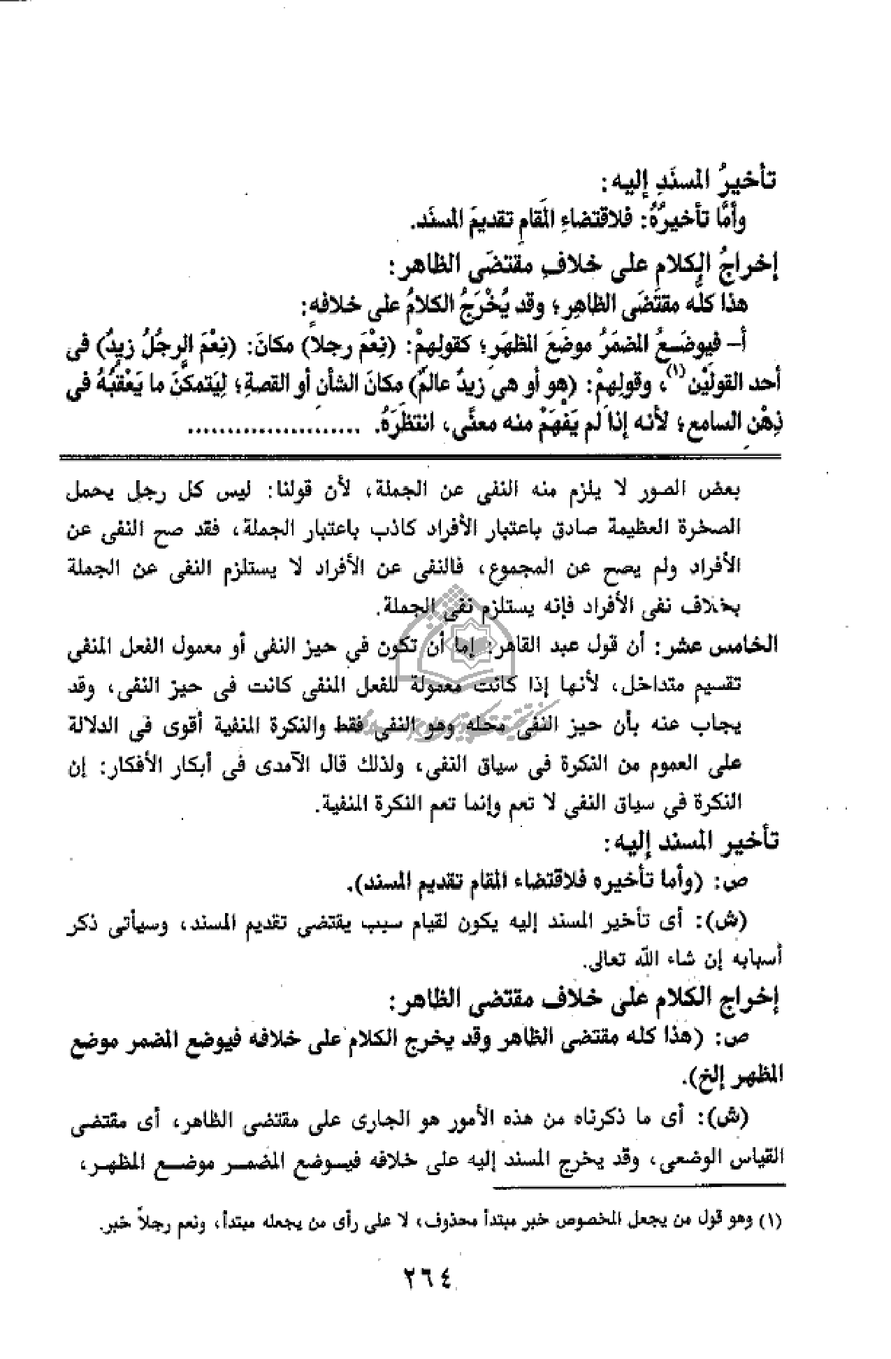 (ش): أى تأخير المسند إليه يكون لقيام سبب يقتضى تقديم المسند، وسيأتى ذكر أسبابه إن شاء الله تعالى.