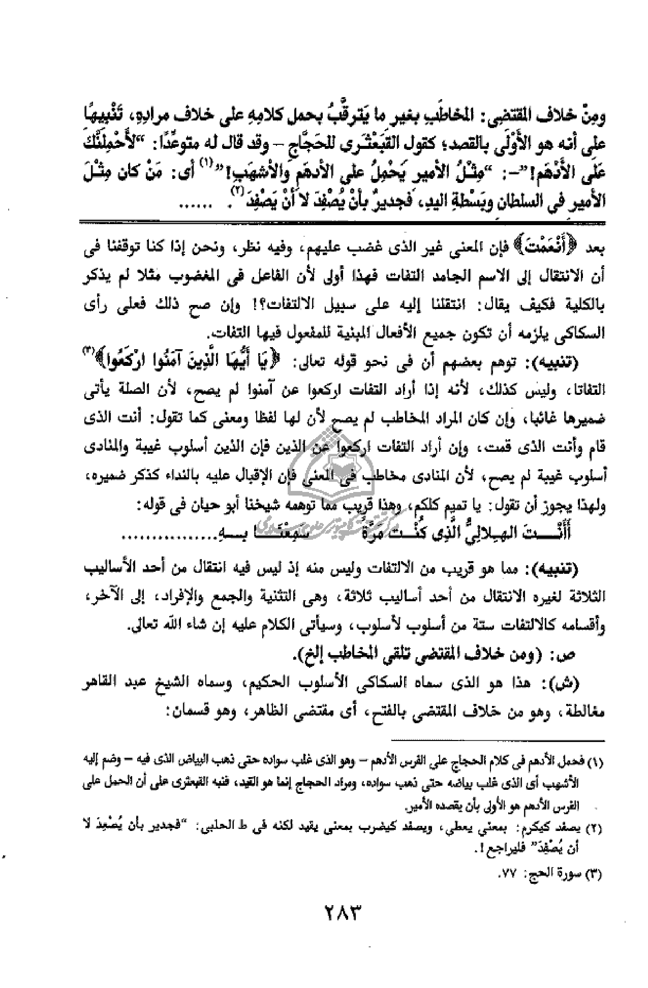 (تنبيه): مما هو قريب من الالتفات وليس منه إذ ليس فيه انتقال من أحد الأساليب الثلاثة لغيره الانتقال من أحد أساليب ثلاثة، وهى التثنية والجمع والإفراد، إلى الآخر، وأقسامه كالالتفات ستة من أسلوب لأسلوب، وسيأتى الكلام عليه إن شاء الله تعالى.