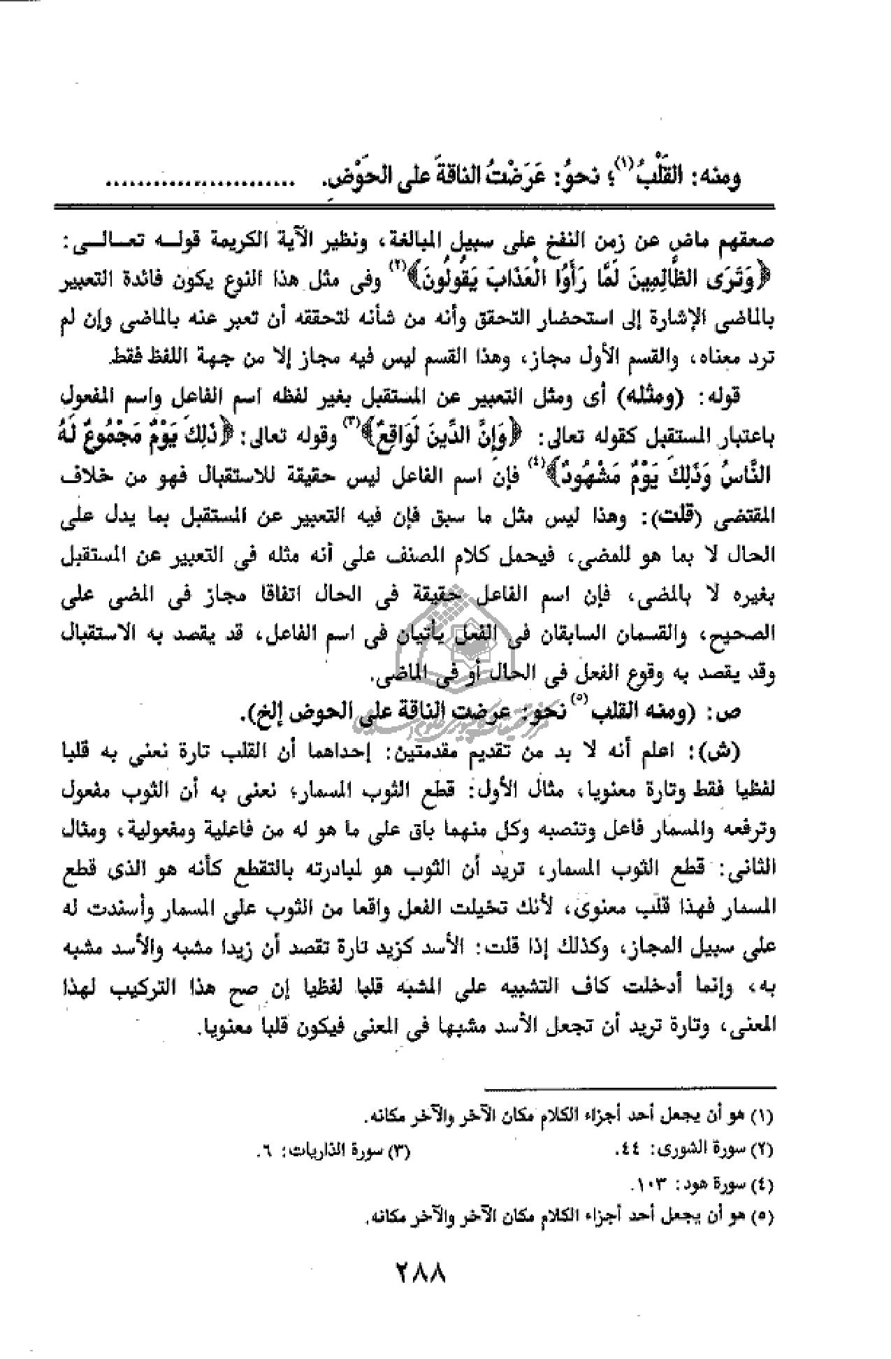 ص: (ومنه القلب (¬5) نحو: عرضت الناقة على الحوض إلخ).