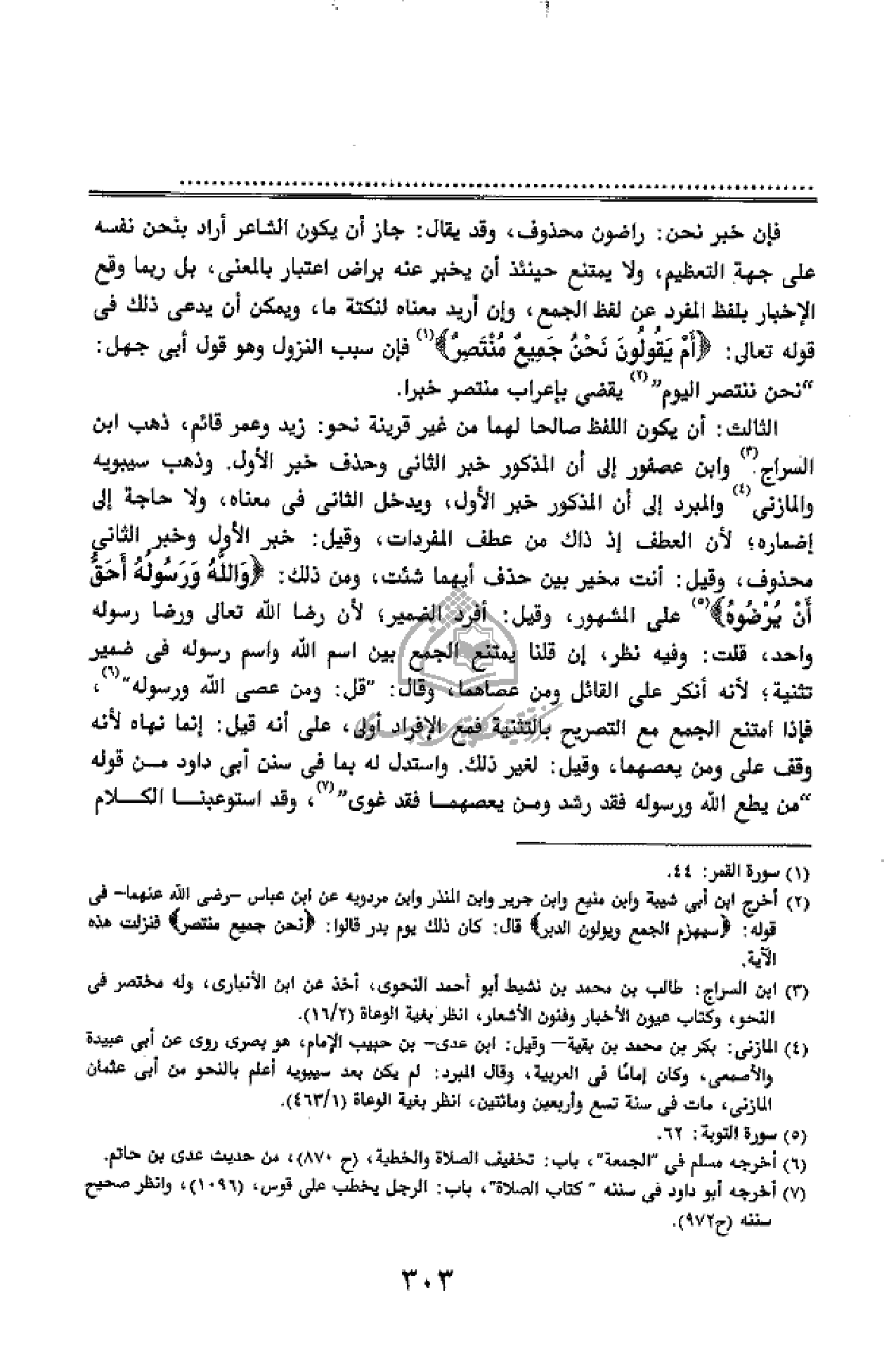 (¬4) المازنى: بكر بن محمد بن بقية - وقيل: ابن عدى - بن حبيب الإمام، هو بصرى روى عن أبى عبيدة والأصمعى، وكان إماما فى العربية، وقال المبرد: لم يكن بعد سيبويه أعلم بالنحو من أبى عثمان المازنى، مات فى سنة تسع وأربعين ومائتين، انظر بغية الوعاة (1/ 463).