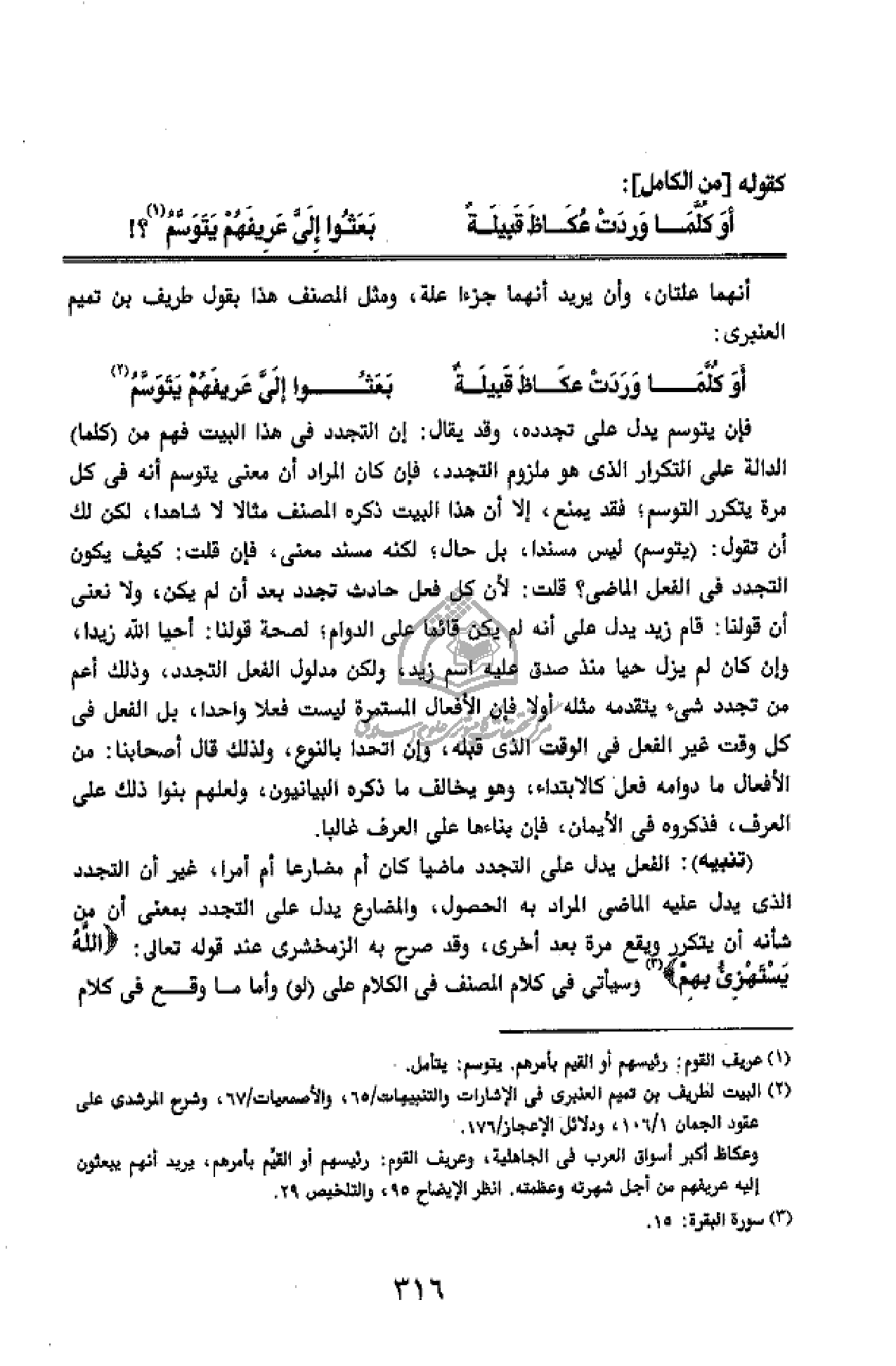 (¬2) البيت لطريف بن تميم العنبرى فى الإشارات والتنبيهات/ 65، والأصمعيات/ 67، وشرح المرشدى على عقود الجمان 1/ 106، ودلائل الإعجاز/ 176.