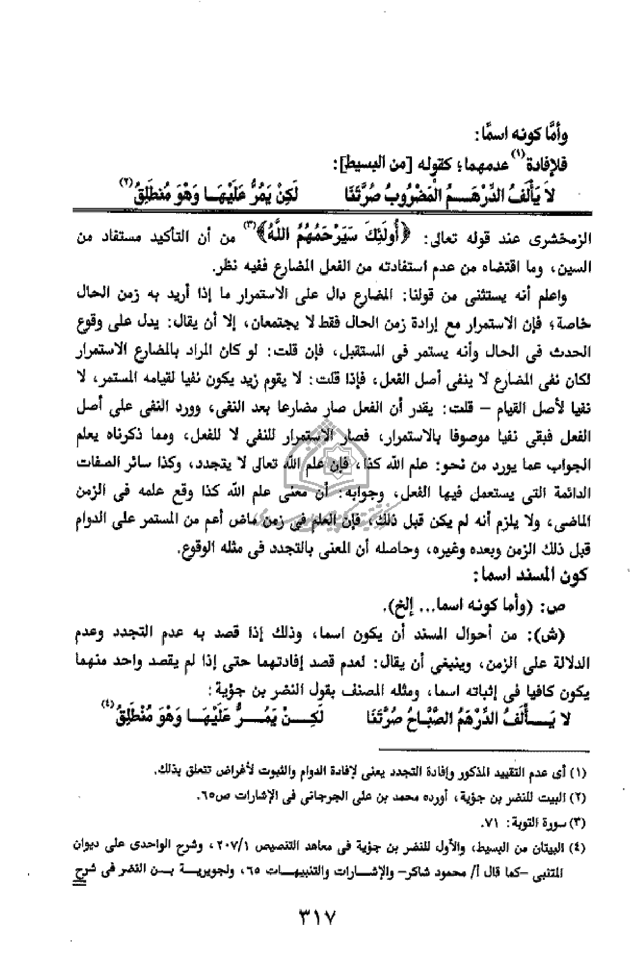 الزمخشرى عند قوله تعالى: أُولئِكَ سَيَرْحَمُهُمُ اللَّهُ (¬3) من أن التأكيد مستفاد من السين، وما اقتضاه من عدم استفادته من الفعل المضارع ففيه نظر.