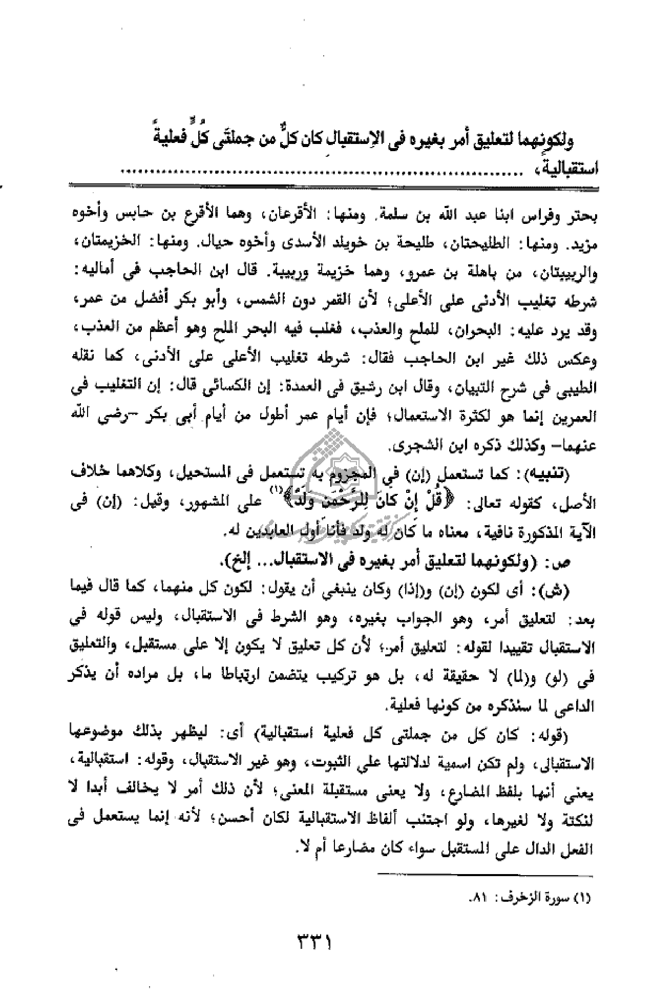 ص: (ولكونهما لتعليق أمر بغيره فى الاستقبال ... إلخ).