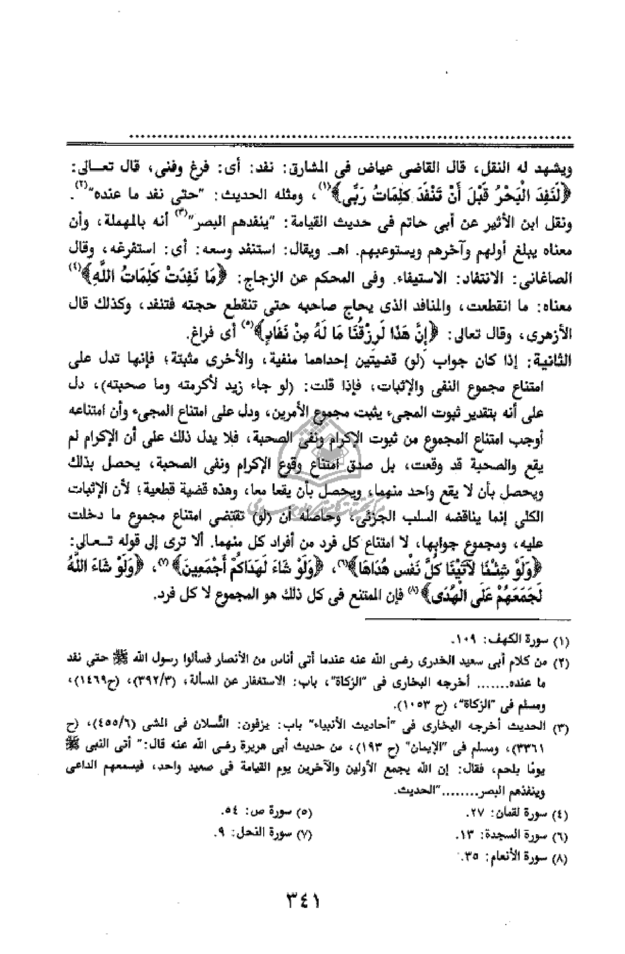 لَنَفِدَ الْبَحْرُ قَبْلَ أَنْ تَنْفَدَ كَلِماتُ رَبِّي (¬1)، ومثله الحديث:" حتى نفد ما عنده" (¬2).