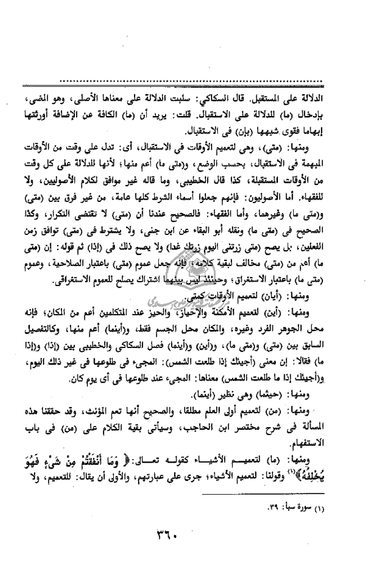 ومنها: (أين) لتعميم الأمكنة والإحياز، والحيز عند المتكلمين أعم من المكان؛ فإنه محل الجوهر الفرد وغيره، والمكان محل الجسم فقط، و (أينما) أعم منها، وكالتفصيل السابق بين (متى) و (متى ما)، و (أين) و (أينما) فصل