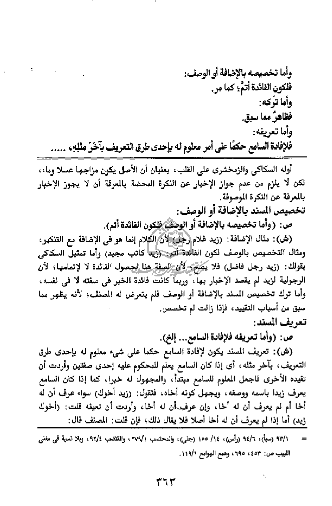 تخصيص المسند بالإضافة أو الوصف: