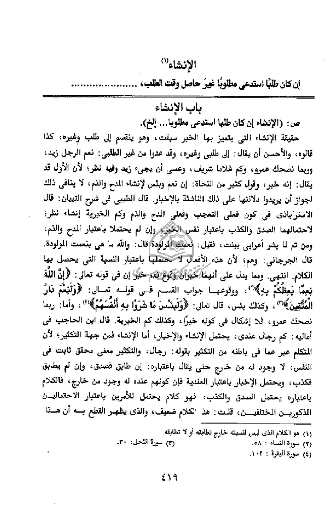 ص: (الإنشاء إن كان طلبا استدعى مطلوبا ... إلخ).