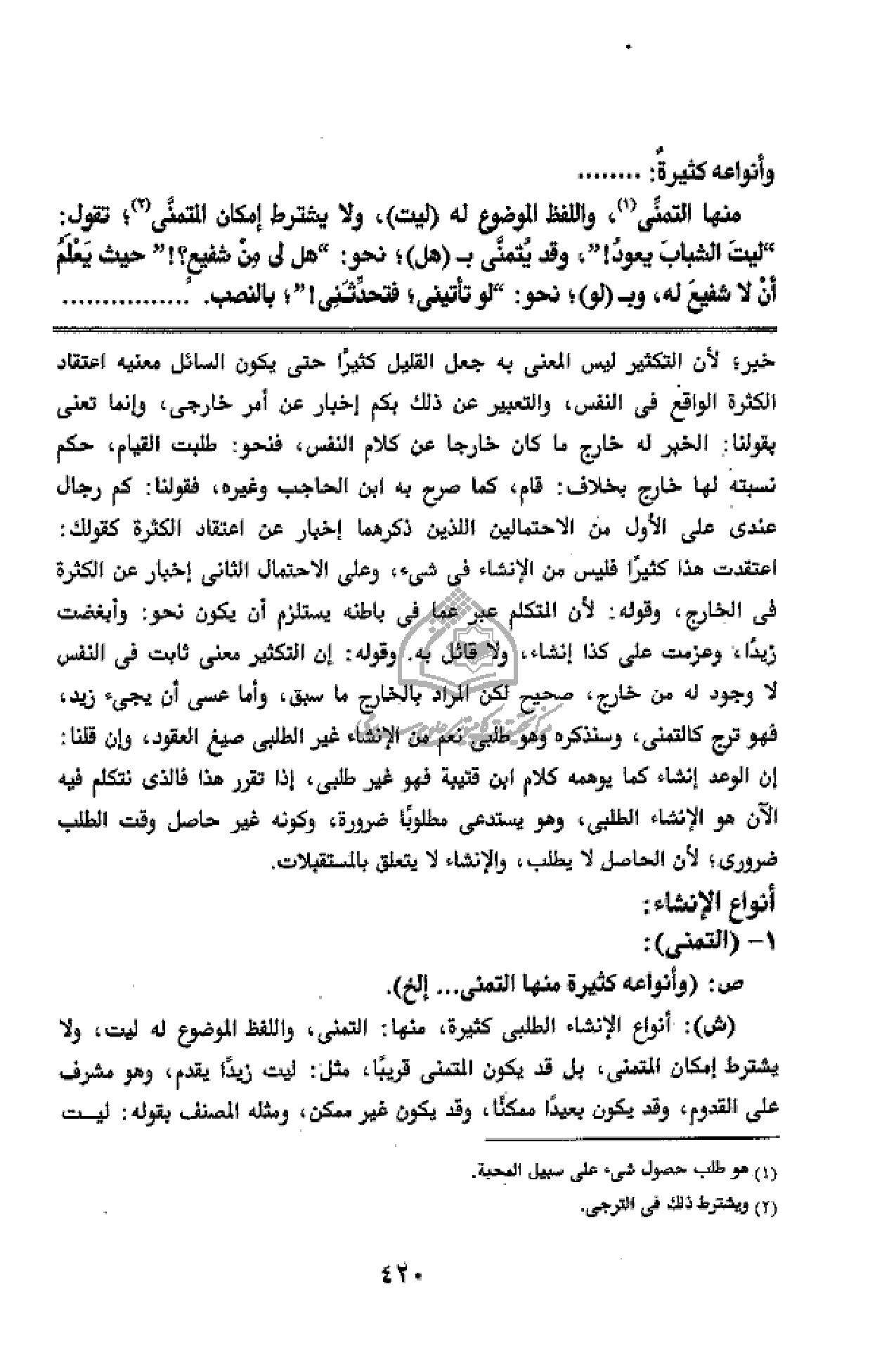 ص: (وأنواعه كثيرة منها التمنى ... إلخ).