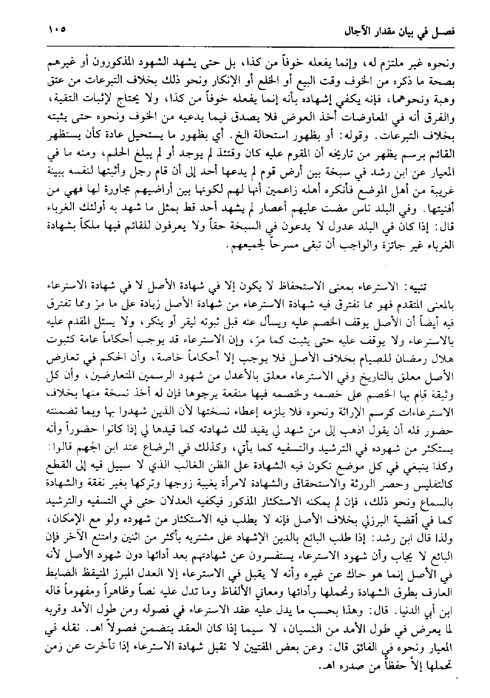 وَنَحْوه غير مُلْتَزم لَهُ، وَإِنَّمَا يَفْعَله خوفًا من كَذَا، بل حَتَّى يشْهد الشُّهُود المذكورون أَو غَيرهم بِصِحَّة مَا ذكره من الْخَوْف وَقت البيع أَو الْخلْع أَو الْإِنْكَار وَنَحْو ذَلِك بِخِلَاف التَّبَرُّعَات من عتق وَهبة وَنَحْوهمَا، فَإِنَّهُ يَكْفِي إشهاده بِأَنَّهُ إِنَّمَا يَفْعَله خوفًا من كَذَا، وَلَا يحْتَاج لإِثْبَات التقية، وَالْفرق أَنه فِي الْمُعَاوَضَات أَخذ الْعِوَض فَلَا يصدق فِيمَا يَدعِيهِ من الْخَوْف وَنَحْوه حَتَّى يُثبتهُ بِخِلَاف التَّبَرُّعَات. وَقَوله: أَو بِظُهُور اسْتِحَالَة الخ. أَي بِظُهُور مَا يَسْتَحِيل عَادَة كَأَن يستظهر الْقَائِم برسم يظْهر من تَارِيخه أَن الْمُقَوّم عَلَيْهِ كَانَ وقتئذ لم يُوجد أَو لم يبلغ الْحلم، وَمِنْه مَا فِي المعيار عَن ابْن رشد فِي سبخَة بَين أَرض قوم لم يَدعهَا أحد إِلَى أَن قَامَ رجل وأثبتها لنَفسِهِ بِبَيِّنَة غَرِيبَة من أهل الْموضع فَأنكرهُ أَهله زاعمين أَنَّهَا لَهُم لكَونهَا بَين أراضيهم مجاورة لَهَا فَهِيَ من أفنيتها. وَفِي الْبَلَد نَاس مَضَت عَلَيْهِم أعصار لم يشْهد أحد قطّ بِمثل مَا شهد بِهِ أُولَئِكَ الغرباء قَالَ: إِذا كَانَ فِي الْبَلَد عدُول لَا يدعونَ فِي السبخة حَقًا وَلَا يعْرفُونَ للقائم فِيهَا ملكا بِشَهَادَة الغرباء غير جَائِزَة وَالْوَاجِب أَن تبقى مسرحاً لجميعهم. تَنْبِيه: الاسترعاء بِمَعْنى الاستحفاظ لَا يكون إِلَّا فِي شَهَادَة الأَصْل لَا فِي شَهَادَة الاسترعاء بِالْمَعْنَى الْمُتَقَدّم فَهُوَ مِمَّا تفترق فِيهِ شَهَادَة الاسترعاء من شَهَادَة الأَصْل زِيَادَة على مَا مرّ وَمِمَّا تفترق فِيهِ أَيْضا أَن الأَصْل يُوقف الْخصم عَلَيْهِ وَيسْأل عَنهُ قبل ثُبُوته لِيُقِر أَو يُنكر، وَلَا يسئل الْمُقدم عَلَيْهِ بالاسترعاء وَلَا يُوقف عَلَيْهِ حَتَّى يثبت كَمَا مرّ، وَإِن الاسترعاء قد يُوجب أحكاماً عَامَّة كثبوت هِلَال رَمَضَان للصيام بِخِلَاف الأَصْل فَلَا يُوجب إِلَّا أحكاماً خَاصَّة، وَأَن الحكم فِي تعَارض الأَصْل مُعَلّق بالتاريخ وَفِي الاسترعاء مُعَلّق بالأعدل من شُهُود الرسمين المتعارضين، وَأَن كل وَثِيقَة قَامَ بهَا الْخصم على خَصمه ولخصمه فِيهَا مَنْفَعَة يرجوها فَإِن لَهُ أَخذ نُسْخَة مِنْهَا بِخِلَاف الاسترعاءات كرسم الإراثة وَنَحْوه فَلَا يلْزمه إِعْطَاء نسختها لِأَن الَّذين شهدُوا بهَا وَبِمَا تضمنته حُضُور فَلهُ أَن يَقُول اذْهَبْ إِلَى من شهد لي يُقيد لَك شَهَادَته كَمَا قيدها لي إِذا كَانُوا حضوراً وَأَنه يستكثر من شُهُوده فِي الترشيد والتسفيه كَمَا يَأْتِي، وَكَذَلِكَ فِي الرَّضَاع عِنْد ابْن الجهم قَالُوا: وَكَذَا يَنْبَغِي فِي كل مَوضِع تكون فِيهِ الشَّهَادَة على الظَّن الْغَالِب الَّذِي لَا سَبِيل فِيهِ إِلَى الْقطع كالتفليس وَحصر الْوَرَثَة والاستحقاق وَالشَّهَادَة لامْرَأَة بغيبة زَوجهَا وَتركهَا بِغَيْر نَفَقَة وَالشَّهَادَة بِالسَّمَاعِ وَنَحْو ذَلِك، فَإِن لم يُمكنهُ الاستكثار الْمَذْكُور فيكفيه العدلان حَتَّى فِي التسفيه والترشيد كَمَا فِي أقضية الْبُرْزُليّ بِخِلَاف الأَصْل فَإِنَّهُ لَا يطْلب فِيهِ الاستكثار من شُهُوده وَلَو مَعَ الْإِمْكَان، وَلذَا قَالَ ابْن رشد: إِذا طلب البَائِع بِالدّينِ الْإِشْهَاد على مُشْتَرِيه بِأَكْثَرَ من اثْنَيْنِ وَامْتنع الآخر فَإِن البَائِع لَا يُجَاب وَأَن شُهُود الاسترعاء يستفسرون عَن شَهَادَتهم بعد أَدَائِهَا دون شُهُود الأَصْل لِأَنَّهُ فِي الأَصْل إِنَّمَا هُوَ حاك عَن غَيره وَأَنه لَا يقبل فِي الاسترعاء إِلَّا الْعدْل المبرز المتيقظ الضَّابِط الْعَارِف بطرق الشَّهَادَة وتحملها وأدائها ومعاني الْأَلْفَاظ وَمَا تدل عَلَيْهِ نصا وظاهراً ومفهوماً قَالَه ابْن أبي الدُّنْيَا. قَالَ: وَهَذَا بِحَسب مَا يدل عَلَيْهِ عقد الاسترعاء فِي فصوله 