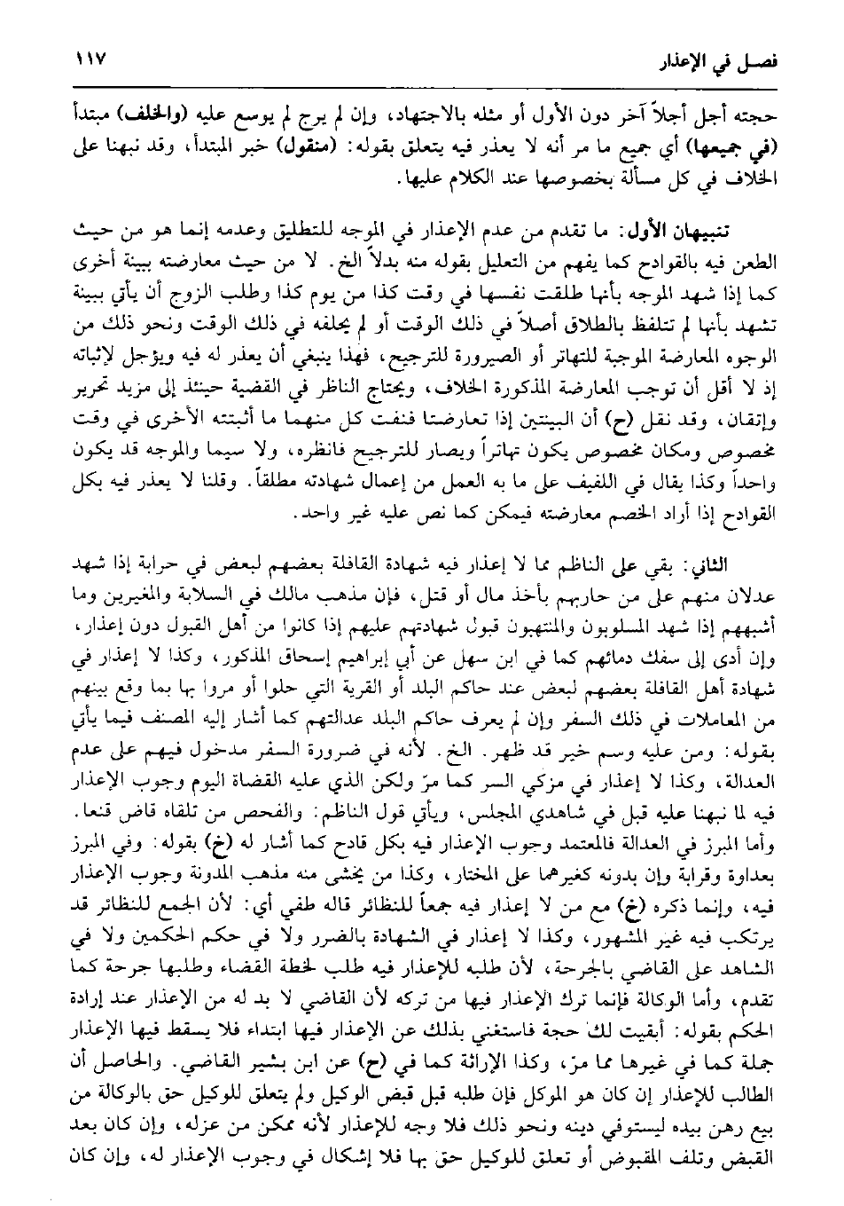 حجَّته أجل أَََجَلًا آخر دون الأول أَو مثله بِالِاجْتِهَادِ وَإِن لم يرج لم يُوسع عَلَيْهِ (وَالْخلف) مُبْتَدأ (فِي جَمِيعهَا) أَي جَمِيع مَا مر أَنه لَا يعْذر فِيهِ يتَعَلَّق بقوله: (مَنْقُول) خبر الْمُبْتَدَأ، وَقد نبهنا على الْخلاف فِي كل مَسْأَلَة بخصوصها عِنْد الْكَلَام عَلَيْهَا. تَنْبِيهَانِ الأول: مَا تقدم من عدم الْإِعْذَار فِي الموجه للتطليق وَعَدَمه إِنَّمَا هُوَ من حَيْثُ الطعْن فِيهِ بالقوادح كَمَا يفهم من التَّعْلِيل بقوله مِنْهُ بَدَلا الخ. لَا من حَيْثُ معارضته بِبَيِّنَة أُخْرَى كَمَا إِذا شهد الموجه بِأَنَّهَا طلقت نَفسهَا فِي وَقت كَذَا من يَوْم كَذَا وَطلب الزَّوْج أَن يَأْتِي بِبَيِّنَة تشهد بِأَنَّهَا لم تتلفظ بِالطَّلَاق أصلا فِي ذَلِك الْوَقْت أَو لم يحلفهُ فِي ذَلِك الْوَقْت وَنَحْو ذَلِك من الْوُجُوه الْمُعَارضَة الْمُوجبَة للتهاتر أَو الصيرورة للترجيح، فَهَذَا يَنْبَغِي أَن يعْذر لَهُ فِيهِ ويؤجل لإثباته إِذْ لَا أقل أَن توجب الْمُعَارضَة الْمَذْكُورَة الْخلاف، وَيحْتَاج النَّاظر فِي الْقَضِيَّة حِينَئِذٍ إِلَى مزِيد تَحْرِير وإتقان، وَقد نقل (ح) أَن الْبَيِّنَتَيْنِ إِذا تَعَارَضَتَا فنفت كل مِنْهُمَا مَا أثبتته الْأُخْرَى فِي وَقت مَخْصُوص وَمَكَان مَخْصُوص يكون تهاتراً ويصار للترجيح فَانْظُرْهُ، وَلَا سِيمَا والموجه قد يكون وَاحِدًا وَكَذَا يُقَال فِي اللفيف على مَا بِهِ الْعَمَل من إِعْمَال شَهَادَته مُطلقًا. وَقُلْنَا لَا يعْذر فِيهِ بِكُل القوادح إِذا أَرَادَ الْخصم معارضته فَيمكن كَمَا نَص عَلَيْهِ غير وَاحِد. الثَّانِي: بَقِي على النَّاظِم مِمَّا لَا إعذار فِيهِ شَهَادَة الْقَافِلَة بَعضهم لبَعض فِي حرابة إِذا شهد عَدْلَانِ مِنْهُم على من حاربهم بِأخذ مَال أَو قتل، فَإِن مَذْهَب مَالك فِي السلابة والمغيرين وَمَا أشبههم إِذا شهد المسلوبون والمنتهبون قبُول شَهَادَتهم عَلَيْهِم إِذا كَانُوا من أهل الْقبُول دون إعذار، وَإِن أدّى إِلَى سفك دِمَائِهِمْ كَمَا فِي ابْن سهل عَن أبي إِبْرَاهِيم إِسْحَاق الْمَذْكُور، وَكَذَا لَا إعذار فِي شَهَادَة أهل الْقَافِلَة بَعضهم لبَعض عِنْد حَاكم الْبَلَد أَو الْقرْيَة الَّتِي حلوا أَو مروا بهَا بِمَا وَقع بَينهم من الْمُعَامَلَات فِي ذَلِك السّفر وَإِن لم يعرف حَاكم الْبَلَد عدالتهم كَمَا أَشَارَ إِلَيْهِ المُصَنّف فِيمَا يَأْتِي بقوله: وَمن عَلَيْهِ وسم خير قد ظهر. الخ. لِأَنَّهُ فِي ضَرُورَة السّفر مَدْخُول فيهم على عدم الْعَدَالَة، وَكَذَا لَا إعذار فِي مزكي السِّرّ كَمَا مرّ وَلَكِن الَّذِي عَلَيْهِ الْقُضَاة الْيَوْم وجوب الْإِعْذَار فِيهِ لما نبهنا عَلَيْهِ قبل فِي شَاهِدي الْمجْلس، وَيَأْتِي قَول النَّاظِم: والفحص من تَلقاهُ قَاض قنعا. وَأما المبرز فِي الْعَدَالَة فَالْمُعْتَمَد وجوب الْإِعْذَار فِيهِ بِكُل قَادِح كَمَا أَشَارَ لَهُ (خَ) بقوله: وَفِي المبرز بعداوة وقرابة وَإِن بِدُونِهِ كغيرهما على الْمُخْتَار، وَكَذَا من يخْشَى مِنْهُ مَذْهَب الْمُدَوَّنَة وجوب الْإِعْذَار فِيهِ، وَإِنَّمَا ذكره (خَ) مَعَ من لَا إعذار فِيهِ جمعا للنظائر قَالَه طفي أَي: لِأَن الْجمع للنظائر قد يرتكب فِيهِ غير الْمَشْهُور، وَكَذَا لَا إعذار فِي الشَّهَادَة بِالضَّرَرِ وَلَا فِي حكم الْحكمَيْنِ وَلَا فِي الشَّاهِد على القَاضِي بالجرحة، لِأَن طلبه للإعذار فِيهِ طلب لخطة الْقَضَاء وطلبها جرحة كَمَا تقدم، وَأما الْوكَالَة فَإِنَّمَا ترك الْإِعْذَار فِيهَا من تَركه لِأَن القَاضِي لَا بُد لَهُ من الْإِعْذَار عِنْد إِرَادَة الحكم بقوله: أبقيت لَك حجَّة فاستغني بذلك عَن الْإِعْذَار فِيهَا ابْتِدَاء فَلَا يسْقط فِيهَا الْإِعْذَار جملَة كَمَا فِي غَيرهَا مِمَّا مرّ، وَكَذَا الإراثة كَمَا فِي (ح) عَن ابْن بشير القَاضِي. وَالْحَاصِل أَن الطَّالِب للإعذ