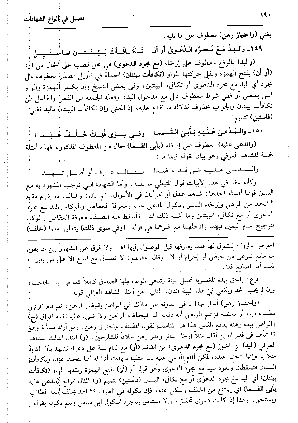 1648 - ; أَو أنْ تَكَافَأتْ بَيِّنَتان فاسْتَبِنْ (وَالْيَد) بِالرَّفْع مَعْطُوف على إرخاء (مَعَ مُجَرّد الدَّعْوَى) فِي مَحل نصب على الْحَال من الْيَد (أَو أَن) بِفَتْح الْهمزَة وَنقل حركتها للواو (تكافأت بينتان) الْجُمْلَة فِي تَأْوِيل مصدر مَعْطُوف على مُجَرّد أَي الْيَد مَعَ مُجَرّد الدَّعْوَى أَو تكافىء الْبَيِّنَتَيْنِ، وَفِي بعض النّسخ وَإِن بِكَسْر الْهمزَة وَالْوَاو الَّتِي بِمَعْنى أَو فَهِيَ شَرط مَعْطُوف على مَعَ مَدْخُول الْيَد، وَفعله الْجُمْلَة من الْفِعْل وَالْفَاعِل من تكافأت بينتان وَالْجَوَاب مَحْذُوف لدلَالَة مَا تقدم عَلَيْهِ، إِذْ الْمَعْنى وَإِن تكافأت الْبَيِّنَتَانِ فاليد تغني. (فاستبن) تتميم. والمُدَّعى صلى الله عَلَيْهِ وَسلم