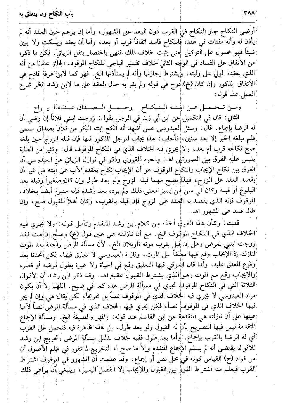 أرْضى النِّكَاح جَازَ النِّكَاح فِي الْقرب دون الْبعد على الْمَشْهُور، وَأما إِن يزْعم حِين العقد أَنه لم يَأْذَن لَهُ وَأَنه مفتات فِي عقده فَالنِّكَاح فَاسد اتِّفَاقًا قرب أَو بعد، وَأما أَن يعْقد ويسكت وَلَا يبين شَيْئا فَهُوَ مَحْمُول على التَّوْكِيل حَتَّى يثبت خلاف ذَلِك انْتهى بِاخْتِصَار بِنَقْل الزياتي. لَكِن مَا ذكره من الِاتِّفَاق على الْفساد فِي الْوَجْه الثَّانِي خلاف تَفْسِير الْبَاجِيّ للنِّكَاح الْمَوْقُوف الْجَائِز عندنَا من أَنه الَّذِي يعقده الْوَلِيّ على وليته، وَيشْتَرط إجازتها وَأَنه لم يستأذنها الخ. فَهُوَ كَمَا لِابْنِ عَرَفَة قَادِح فِي الِاتِّفَاق الْمَذْكُور وَإِن كَانَ (خَ) درج فِي قَوْله وَلم يقر بِهِ حَال العقد على مَا لِابْنِ رشد انْظُر شرح الْعَمَل عِنْد قَوْله: وَمن تحمل عَن ابْنه النِّكَاح وَحمل الصَدَاق عَنهُ ليراح الثَّانِي: قَالَ فِي التَّكْمِيل عَن ابْن أبي زيد فِي الرجل يَقُول: زوجت ابْنَتي فلَانا إِن رَضِي أَن لَهُ الرِّضَا بِإِجْمَاع. قَالَ: وَسُئِلَ العبدوسي عَمَّن أشهد أَنه أنكح ابْنَته الْبكر من فلَان بِصَدَاق مُسَمّى فَلم يبلغهُ الْخَبَر إِلَّا بعد سِنِين، فَأجَاب: هَذَا يُجَاب للرجل الْمَذْكُور فِيهَا فَإِن قبله الزَّوْج حِين بلغه صَحَّ نِكَاحه قرب أم بعد، وَلَا يجْرِي فِيهِ الْخلاف الَّذِي فِي النِّكَاح الْمَوْقُوف قَالَ: وَكثير من الطّلبَة يلبس عَلَيْهِ الْفرق بَين الصُّورَتَيْنِ اه. وَنَحْوه للقوري وَذكر فِي نَوَازِل الزياتي عَن العبدوسي أَن الْفرق بَين نِكَاح الْإِيجَاب وَالنِّكَاح الْمَوْقُوف هُوَ أَن الْإِيجَاب نِكَاح يعقده الْأَب على ابْنَته من غير أَن يقْصد العقد على الزَّوْج، فَهَذَا يَصح مهما قبله الزَّوْج وَلَو بعد طول وَإِن كَانَ صَغِيرا وَقَبله بعد الْبلُوغ أَو قبله وَكَانَ فِي سنّ من يُمَيّز معنى ذَلِك وَلم يردهُ بعد رشده فَإِنَّهُ منبرم أَيْضا بِخِلَاف الْمَوْقُوف فَإِنَّهُ الَّذِي يقْصد بِهِ العقد على الزَّوْج فَإِن قبله بِالْقربِ، وَكَانَ أَهلا للقبول صَحَّ، وَإِن طَال فسد على الْمَشْهُور اه. قلت: وَكَأن هَذَا الْفرق أَخذه من كَلَام ابْن رشد الْمُتَقَدّم وَتَأمل قَوْله: وَلَا يجْرِي فِيهِ الْخلاف الَّذِي فِي النِّكَاح الْمَوْقُوف الخ. مَعَ أَن نازلته هِيَ عين قَول (خَ) وَصَحَّ إِن مت فقد زوجت ابْنَتي بِمَرَض وَهل إِن قيل بِقرب مَوته تَأْوِيلَانِ الخ. لِأَن مَسْأَلَة الْمَرَض رَاجِعَة بعد الْمَوْت لنازلته إِذْ الْإِيجَاب وَقع فِيهَا مُعَلّقا على الْمَوْت، ونازلة العبدوسي لَا تَعْلِيق فِيهَا، لَكِن اتحدتا بعد وُقُوع الْمُعَلق عَلَيْهِ، وَلذَا قَالَ الْعَوْفِيّ فِيهَا التَّعْلِيق وَقع فِي الْحَيَاة وَلَا عِبْرَة بطول مَرضه أَو قصره والإيجاب وَقع مَعَ الْمَوْت وَهُوَ الَّذِي يشْتَرط الْقبُول عقبه اه. وَقد ذكر ابْن رشد أَن الْأَقْوَال الثَّلَاثَة الَّتِي فِي النِّكَاح الْمَوْقُوف تجْرِي فِي مَسْأَلَة الْمَرَض هَذِه كَمَا فِي ضيح. اللَّهُمَّ إِلَّا أَن يكون مُرَاد العبدوسي لَا يجْرِي فِيهِ الْخلاف الَّذِي فِي الْمَوْقُوف نصا بل تخريجاً، لَكِن يُقَال هِيَ وَإِن لم يجر فِيهَا الْخلاف الَّذِي فِي الْمَوْقُوف نصا، لَكِن يجْرِي فِيهَا الْخلاف الَّذِي فِي مَسْأَلَة الْمَرَض نصا لِأَنَّهَا عينهَا على أَن نازلته هِيَ الْمُتَقَدّمَة عَن ابْن الْقَاسِم عِنْد قَوْله: وَالْمهْر والصيغة الخ. وَمَسْأَلَة الْإِجْمَاع الْمُتَقَدّمَة لَيْسَ فِيهَا التَّصْرِيح بِأَن لَهُ الْقبُول وَلَو بعد طول، بل هَذِه ظَاهِرَة فِيهِ فَتحمل على الْقرب أَي لَهُ الرِّضَا بِالْقربِ بِإِجْمَاع، وَأما بعد طول فَفِيهِ خلاف بِدَلِيل مَسْأَلَة الْمَرَض وَتَخْرِيج ابْن رشد للأقوال يَقْتَضِي أَنه لم يسلم الْإِجْمَاع الْمُتَقَدّم وإلاَّ مَا صَحَّ لَهُ التَّخْرِيج لما تقرر فِي علم ال
