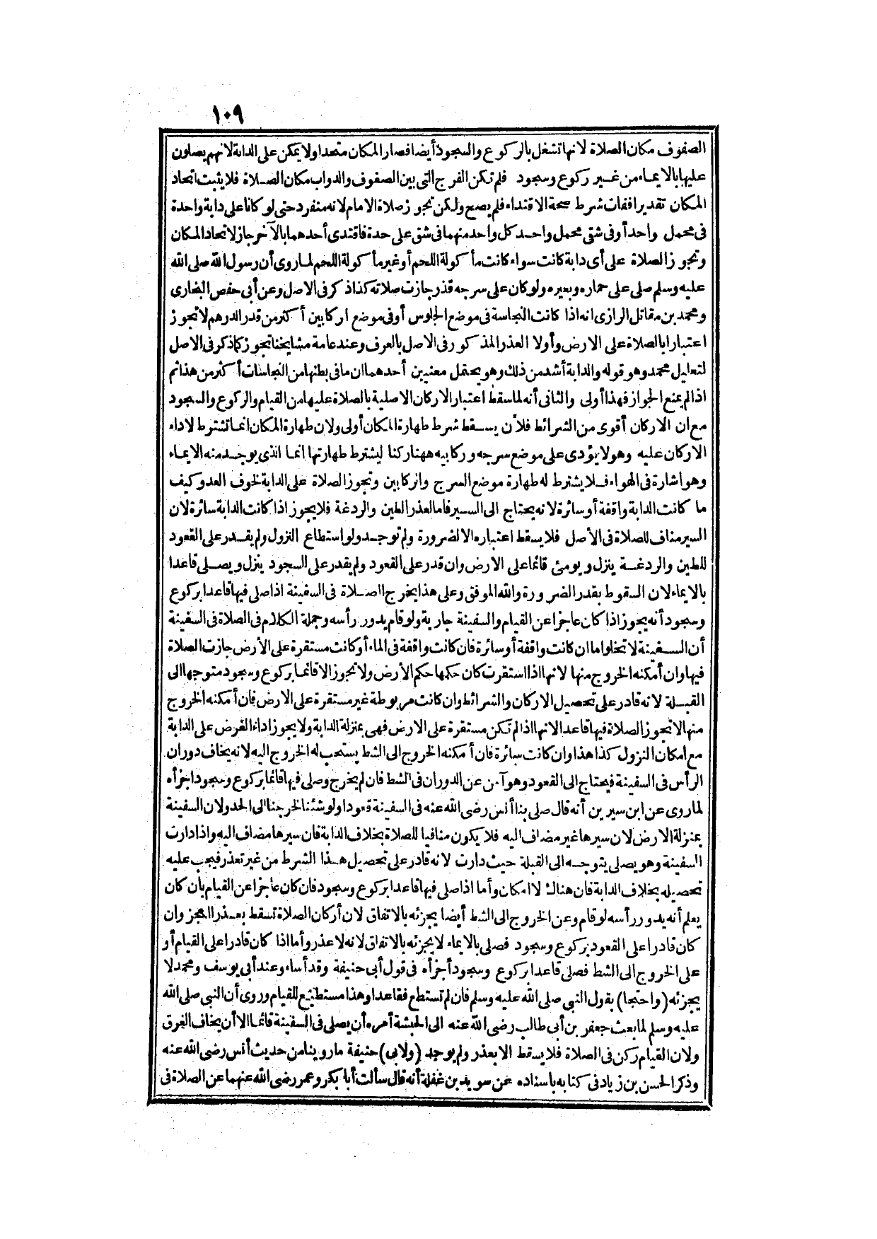 الصُّفُوفِ مَكَانَ الصَّلَاةِ؛ لِأَنَّهَا تُشْغَلُ بِالرُّكُوعِ وَالسُّجُودِ أَيْضًا فَصَارَ الْمَكَانُ مُتَّحِدًا، وَلَا يُمْكِنُ عَلَى الدَّابَّةِ لِأَنَّهُمْ يُصَلُّونَ عَلَيْهَا بِالْإِيمَاءِ مِنْ غَيْرِ رُكُوعٍ وَسُجُودٍ، فَلَمْ تَكُنْ الْفُرَجُ الَّتِي بَيْنَ الصُّفُوفِ وَالدَّوَابِّ مَكَانَ الصَّلَاةِ فَلَا يَثْبُتُ اتِّحَادُ الْمَكَانِ تَقْدِيرًا، فَفَاتَ شَرْطُ صِحَّةِ الِاقْتِدَاءِ فَلَمْ يَصِحَّ، وَلَكِنْ تَجُوزُ صَلَاةُ الْإِمَامِ لِأَنَّهُ مُنْفَرِدٌ حَتَّى لَوْ كَانَا عَلَى دَابَّةٍ وَاحِدَةٍ فِي مَحْمَلٍ وَاحِدٍ أَوْ فِي شِقَّيْ مَحْمَلٍ وَاحِدٍ، كُلُّ وَاحِدٍ مِنْهُمَا فِي شِقٍّ عَلَى حِدَةٍ، فَاقْتَدَى أَحَدُهُمَا بِالْآخَرِ جَازَ لِاتِّحَادِ الْمَكَانِ وَتَجُوزُ الصَّلَاةُ عَلَى أَيِّ دَابَّةٍ كَانَتْ، سَوَاءٌ كَانَتْ مَأْكُولَةَ اللَّحْمِ أَوْ غَيْرَ مَأْكُولَةِ اللَّحْمِ، لِمَا رُوِيَ أَنَّ رَسُولَ اللَّهِ - صَلَّى اللَّهُ عَلَيْهِ وَسَلَّمَ - صَلَّى عَلَى حِمَارِهِ وَبَعِيرِهِ.