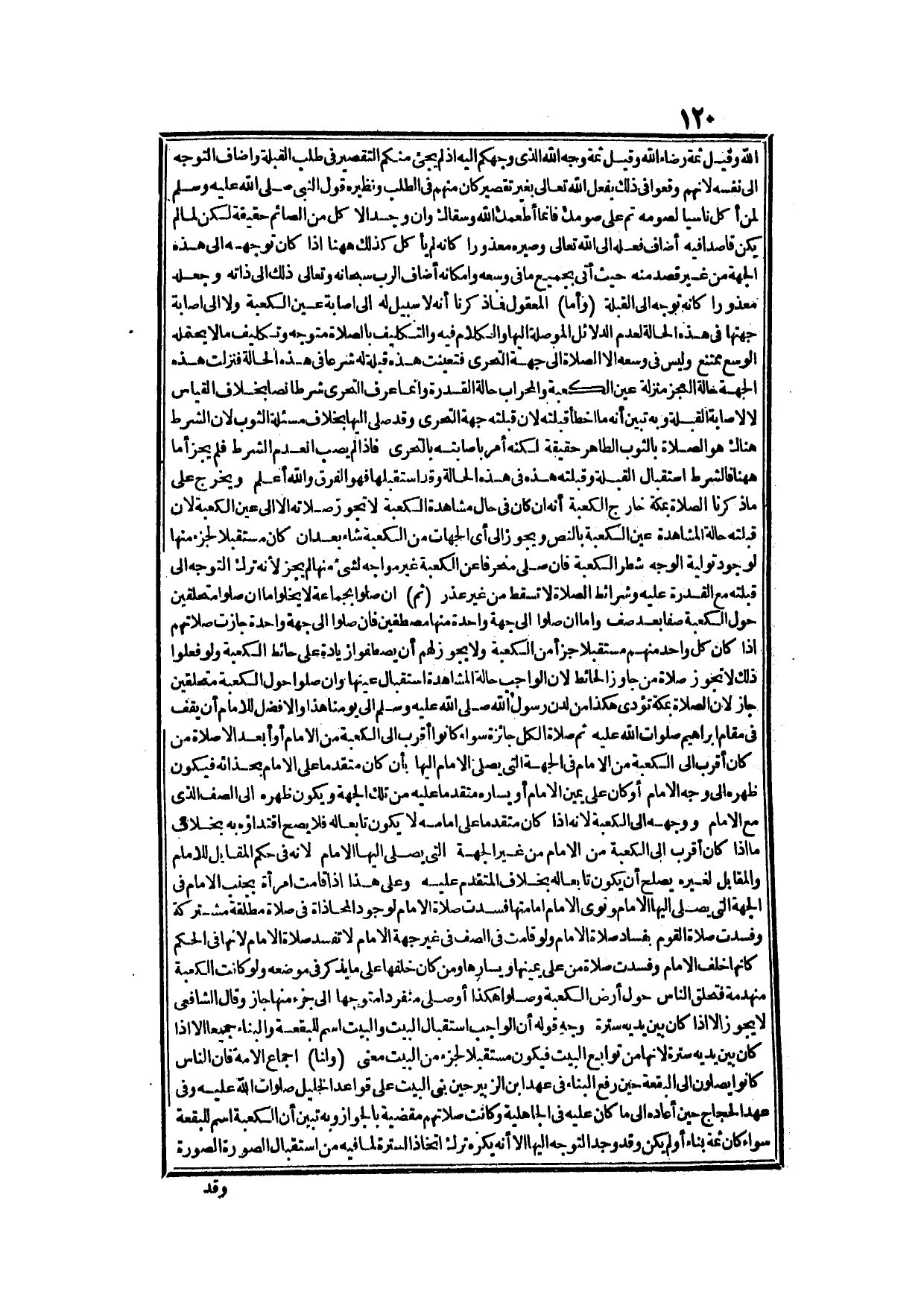 وَقَدْ اسْتَقْبَلَهَا، فَهُوَ الْفَرْقُ وَاَللَّهُ أَعْلَمُ وَيَخْرُجُ عَلَى مَا ذَكَرْنَا الصَّلَاةُ بِمَكَّةَ خَارِجَ الْكَعْبَةِ أَنَّهُ إنْ كَانَ فِي حَالِ مُشَاهَدَةِ الْكَعْبَةِ لَا تَجُوزُ صَلَاتُهُ إلَّا إلَى عَيْنِ الْكَعْبَةِ؛ لِأَنَّ قِبْلَتَهُ حَالَةَ الْمُشَاهَدَةِ عَيْنُ الْكَعْبَةِ بِالنَّصِّ، وَيَجُوزُ إلَى أَنَّ الْجِهَاتِ مِنْ الْكَعْبَةِ شَاءَ بَعْدَ أَنْ كَانَ مُسْتَقْبِلًا لِجُزْءٍ مِنْهَا لِوُجُودِ تَوْلِيَةِ الْوَجْهِ شَطْرَ الْكَعْبَةِ، فَإِنْ صَلَّى مُنْحَرِفًا عَنْ الْكَعْبَةِ غَيْرَ مُوَاجِهٍ لِشَيْءٍ مِنْهَا لَمْ يَجُزْ؛ لِأَنَّهُ تَرَكَ التَّوَجُّهَ إلَى قِبْلَتِهِ مَعَ الْقُدْرَةِ عَلَيْهِ، وَشَرَائِطُ الصَّلَاةِ لَا تَسْقُطُ مِنْ غَيْرِ عُذْرٍ.