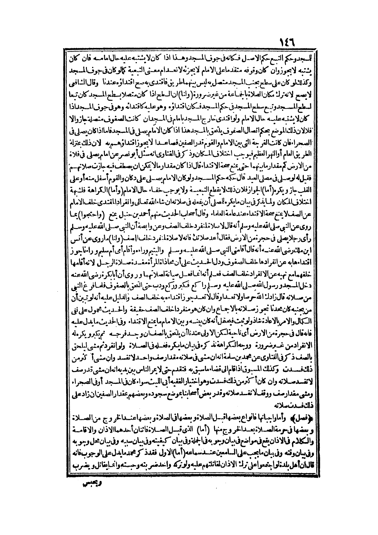 لِلْمَسْجِدِ، وَحُكْمُ التَّبَعِ حُكْمُ الْأَصْلِ فَكَأَنَّهُ فِي جَوْفِ الْمَسْجِدِ، وَهَذَا إذَا كَانَ لَا يَشْتَبِهُ عَلَيْهِ حَالُ إمَامِهِ، فَإِنْ كَانَ يَشْتَبِهُ لَا يَجُوزُ وَإِنْ كَانَ وُقُوفُهُ مُتَقَدِّمًا عَلَى الْإِمَامِ لَا يُجْزِئْهُ لِانْعِدَامِ مَعْنَى التَّبَعِيَّةِ، كَمَا لَوْ كَانَ فِي جَوْفِ الْمَسْجِدِ وَكَذَلِكَ لَوْ كَانَ عَلَى سَطْحٍ بِجَنْبِ الْمَسْجِدِ، مُتَّصِلٍ بِهِ، لَيْسَ بَيْنَهُمَا طَرِيقٌ، فَاقْتَدَى بِهِ - صَحَّ اقْتِدَاؤُهُ عِنْدَنَا، وَقَالَ الشَّافِعِيُّ لَا يَصِحُّ؛ لِأَنَّهُ تَرَكَ مَكَانَ الصَّلَاةِ بِالْجَمَاعَةِ مِنْ غَيْرِ ضَرُورَةٍ.