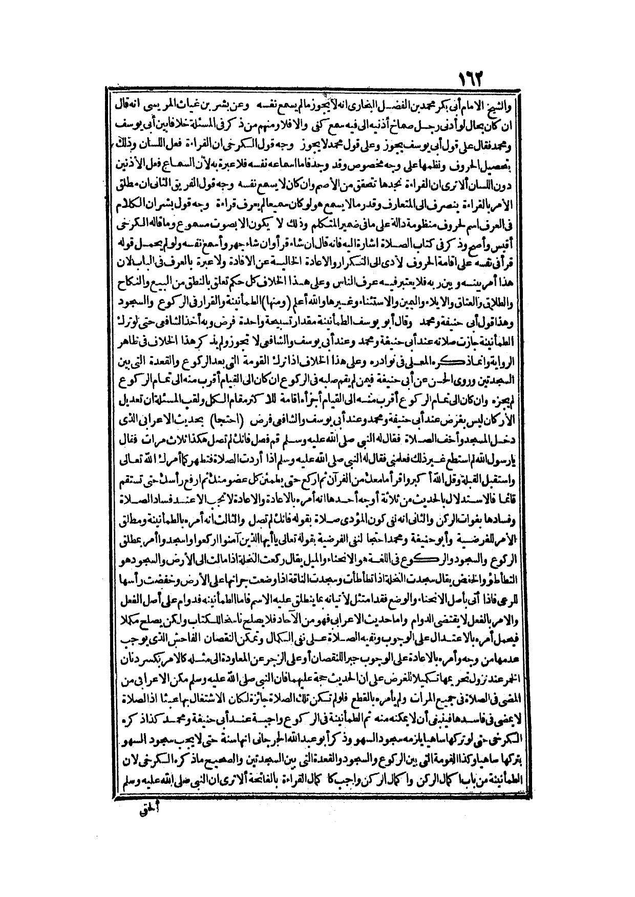 وَالشَّيْخِ الْإِمَامِ أَبِي بَكْرٍ مُحَمَّدِ بْنِ الْفَضْلِ الْبُخَارِيِّ أَنَّهُ لَا يَجُوزُ مَا لَمْ يُسْمِعْ نَفْسُهُ، وَعَنْ بِشْرِ بْنِ غِيَاثٍ الْمَرِيسِيِّ أَنَّهُ قَالَ: إنْ كَانَ بِحَالٍ لَوْ أَدْنَى رَجُلٌ صِمَاخَ أُذُنَيْهِ إلَى فِيهِ سَمِعَ كَفَى، وَإِلَّا فَلَا، وَمِنْهُمْ مَنْ ذَكَرَ فِي الْمَسْأَلَةِ خِلَافًا بَيْنَ أَبِي يُوسُفَ وَمُحَمَّدٍ، فَقَالَ عَلَى قَوْلِ أَبِي يُوسُفَ: يَجُوزُ، وَعَلَى قَوْلِ مُحَمَّدٍ: لَا يَجُوزُ، وَجْهُ قَوْلِ الْكَرْخِيِّ أَنَّ الْقِرَاءَةَ فِعْلُ اللِّسَانِ وَذَلِكَ بِتَحْصِيلِ الْحُرُوفِ وَنَظْمِهَا عَلَى وَجْهٍ مَخْصُوصٍ وَقَدْ وُجِدَ، فَأَمَّا إسْمَاعُهُ نَفْسَهُ فَلَا عِبْرَةَ بِهِ؛ لِأَنَّ السَّمَاعَ فِعْلُ الْأُذُنَيْنِ دُونَ اللِّسَانِ، أَلَا تَرَى أَنَّ الْقِرَاءَةَ نَجِدُهَا تَتَحَقَّقُ مِنْ الْأَصَمِّ وَإِنْ كَانَ لَا يُسْمِعُ نَفْسَهُ؟ وَجْهُ قَوْلِ الْفَرِيقِ الثَّانِي أَنَّ مُطْلَقَ الْأَمْرِ بِالْقِرَاءَةِ يَنْصَرِفُ إلَى الْمُتَعَارَفِ، وَقَدْرِ مَا لَا يَسْمَعُ هُوَ لَوْ كَانَ سَمِيعًا لَمْ يَعْرِفْ قِرَاءَةً.