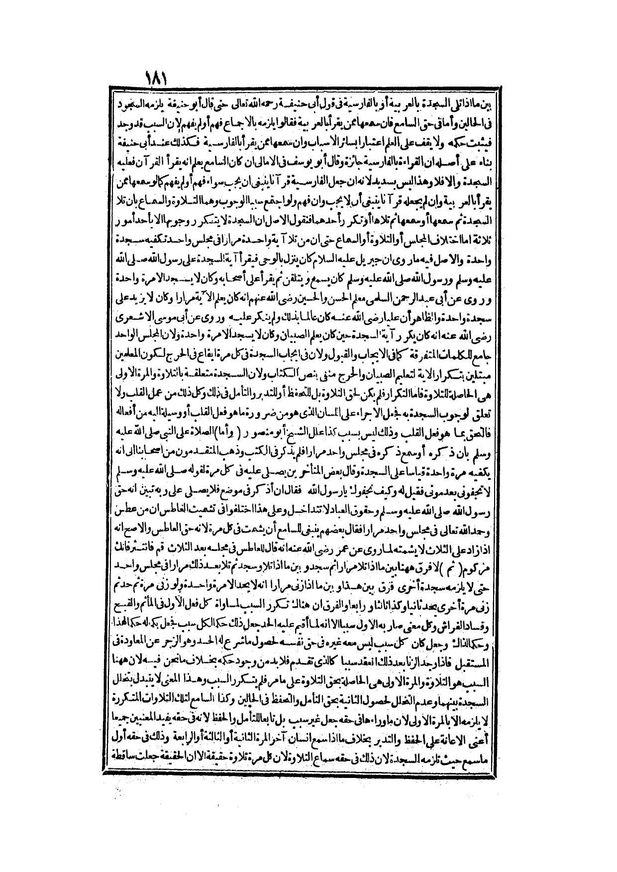 بَيْنَ مَا إذَا تَلَا السَّجْدَةَ بِالْعَرَبِيَّةِ أَوْ بِالْفَارِسِيَّةِ فِي قَوْلِ أَبِي حَنِيفَةَ - رَحِمَهُ اللَّهُ تَعَالَى - حَتَّى قَالَ أَبُو حَنِيفَةَ: يَلْزَمُهُ السُّجُودُ فِي الْحَالَيْنِ.