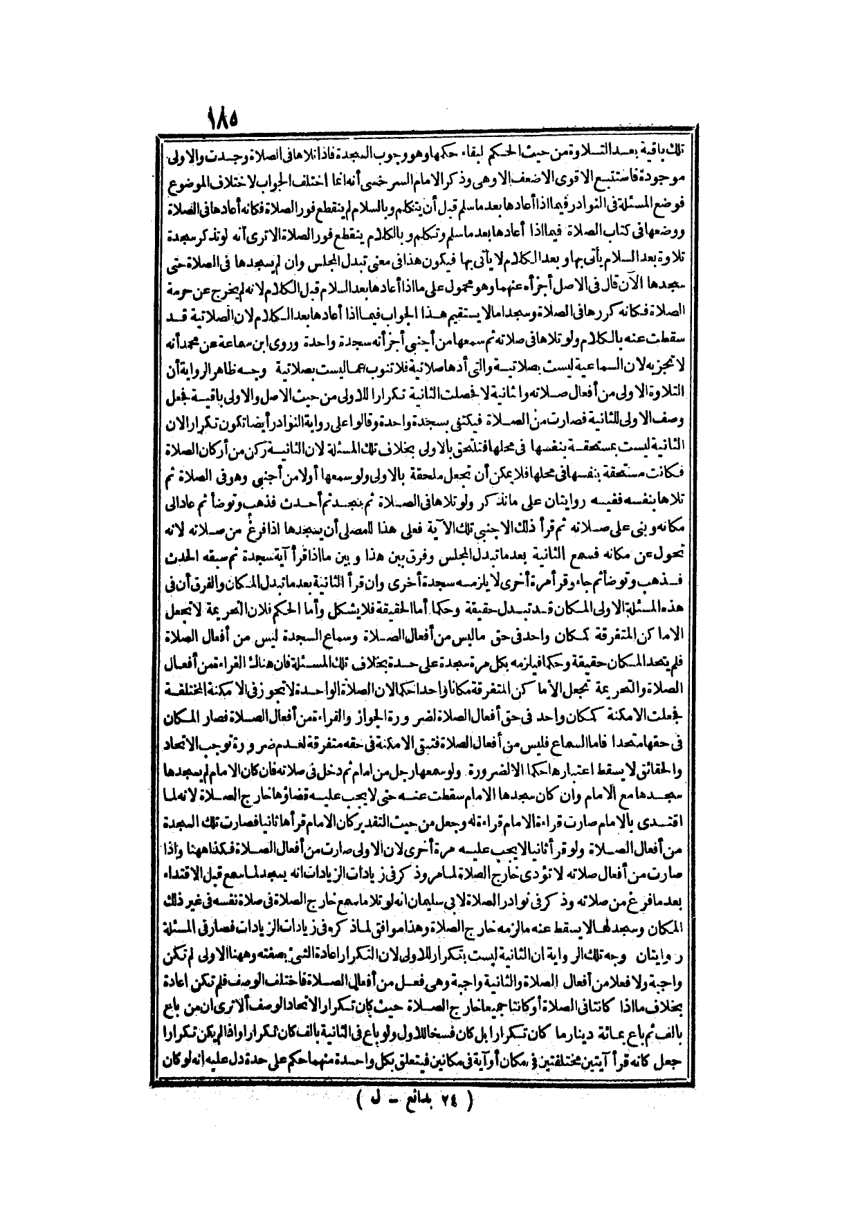 وَذَكَرَ الْإِمَامُ السَّرَخْسِيُّ أَنَّهُ إنَّمَا اخْتَلَفَ الْجَوَابُ لِاخْتِلَافِ الْمَوْضِعِ فَوَضَعَ الْمَسْأَلَةَ فِي النَّوَادِرِ فِيمَا إذَا أَعَادَهَا بَعْدَ مَا سَلَّمَ قَبْلَ أَنْ يَتَكَلَّمَ وَبِالسَّلَامِ لَمْ يَنْقَطِعْ فَوْرُ الصَّلَاةِ فَكَأَنَّهُ أَعَادَهَا فِي الصَّلَاةِ وَوَضَعَهَا فِي كِتَابِ الصَّلَاةِ فِيمَا إذَا أَعَادَهَا بَعْدَ مَا سَلَّمَ وَتَكَلَّمَ وَبِالْكَلَامِ يَنْقَطِعُ فَوْرُ الصَّلَاةِ أَلَا تَرَى أَنَّهُ لَوْ تَذَكَّرَ سَجْدَةَ تِلَاوَةٍ بَعْدَ السَّلَامِ يَأْتِي بِهَا وَبَعْدَ الْكَلَامِ لَا يَأْتِي بِهَا؟ فَيَكُونُ هَذَا فِي مَعْنَى تَبَدُّلِ الْمَجْلِسِ وَإِنْ لَمْ يَسْجُدْهَا فِي الصَّلَاةِ حَتَّى سَجَدَهَا الْآنَ قَالَ فِي الْأَصْلِ: أَجْزَأَهُ عَنْهُمَا، وَهُوَ مَحْمُولٌ عَلَى مَا إذَا أَعَادَهَا بَعْدَ السَّلَامِ قَبْلَ الْكَلَامِ؛ لِأَنَّهُ لَمْ يَخْرُجْ عَنْ حُرْمَةِ الصَّلَاةِ فَكَأَنَّهُ كَرَّرَهَا فِي الصَّلَاةِ وَسَجَدَ، أَمَا لَا يَسْتَقِيمُ هَذَا الْجَوَابُ فِيمَا إذَا أَعَادَهَا بَعْدَ الْكَلَامِ؛ لِأَنَّ الصَّلَاتِيَّةَ قَدْ سَقَطَتْ عَنْهُ بِالْكَلَامِ.