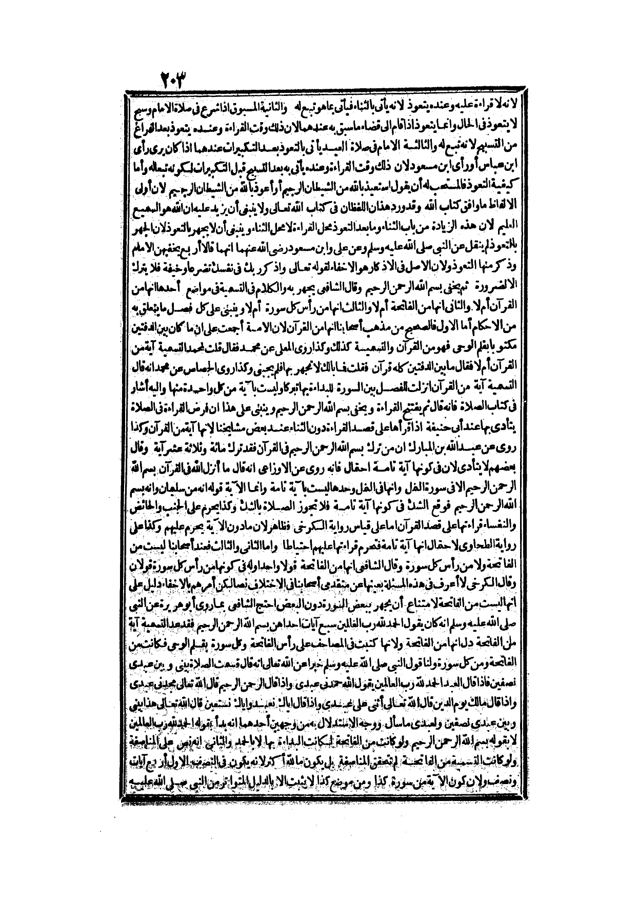 وَكَذَا رُوِيَ عَنْ عَبْدِ اللَّهِ بْنِ الْمُبَارَكِ أَنَّ مَنْ تَرَكَ بِسْمِ اللَّهِ الرَّحْمَنِ الرَّحِيمِ فِي الْقُرْآنِ فَقَدْ تَرَكَ مِائَةً وَثَلَاثَ عَشْرَةَ آيَةً، وَقَالَ بَعْضُهُمْ: لَا يَتَأَدَّى؛ لِأَنَّ فِي كَوْنِهَا آيَةً تَامَّةً احْتِمَالٌ فَإِنَّهُ رُوِيَ عَنْ الْأَوْزَاعِيِّ أَنَّهُ قَالَ: مَا أَنْزَلَ اللَّهُ فِي الْقُرْآنِ بِسْمِ اللَّهِ الرَّحْمَنِ الرَّحِيمِ إلَّا فِي سُورَةِ النَّمْلِ، وَإِنَّهَا فِي النَّمْلِ وَحْدَهَا لَيْسَتْ بِآيَةٍ تَامَّةٍ وَإِنَّمَا الْآيَةُ قَوْلُهُ {إِنَّهُ مِنْ سُلَيْمَانَ وَإِنَّهُ بِسْمِ اللَّهِ الرَّحْمَنِ الرَّحِيمِ} [النمل: 30] فَوَقَعَ الشَّكُّ فِي كَوْنِهَا آيَةً تَامَّةً فَلَا تَجُوزُ الصَّلَاةُ بِالشَّكِّ وَكَذَا يَحْرُمُ عَلَى الْجُنُبِ وَالْحَائِضِ وَالنُّفَسَاءِ قِرَاءَتُهَا عَلَى قَصْدِ الْقُرْآنِ.