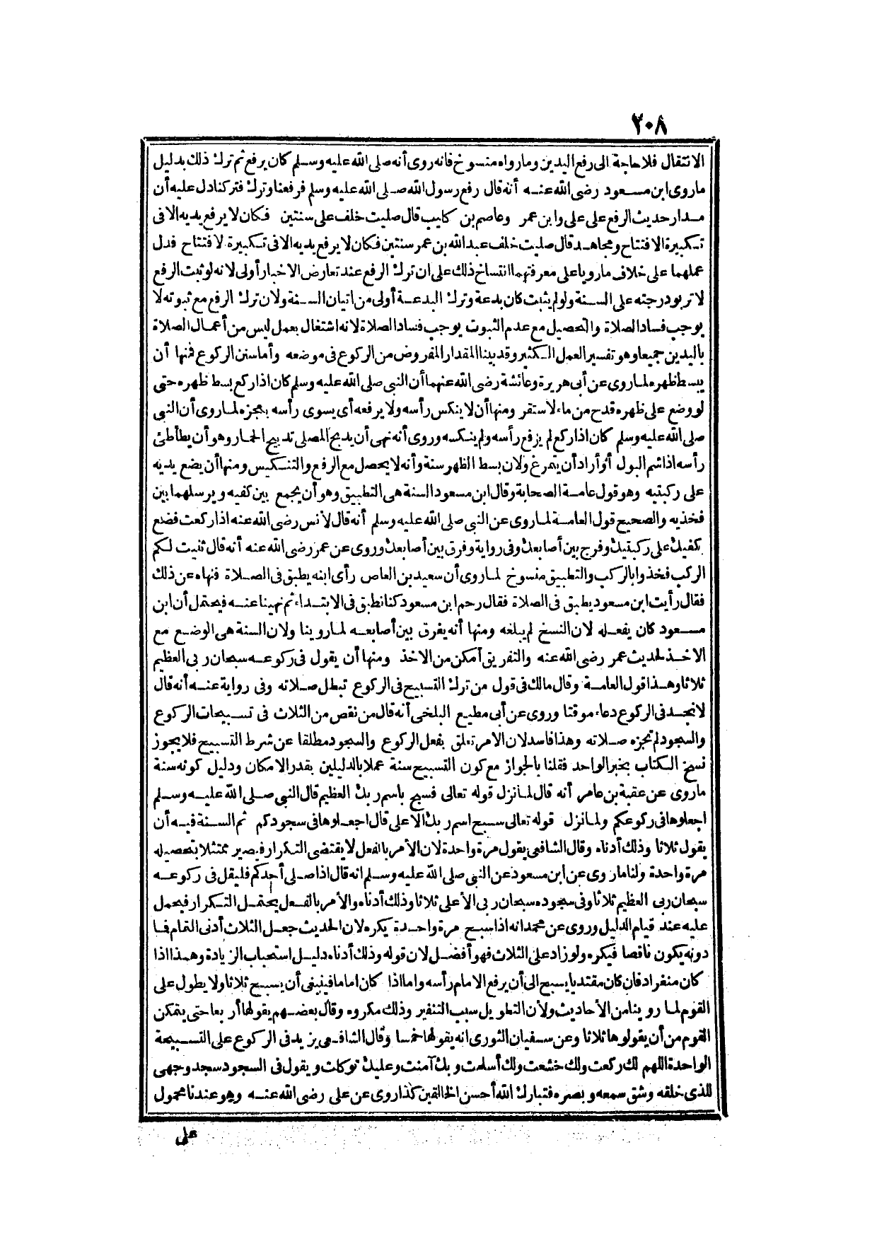 قَالَ: صَلَّيْتُ خَلْفَ عَلِيٍّ سَنَتَيْنِ فَكَانَ لَا يَرْفَعُ يَدَيْهِ إلَّا فِي تَكْبِيرَةِ الِافْتِتَاحِ، وَمُجَاهِدٌ قَالَ صَلَّيْت خَلْفَ عَبْدِ اللَّهِ بْنِ عُمَرَ سَنَتَيْنِ فَكَانَ لَا يَرْفَعُ يَدَيْهِ إلَّا فِي تَكْبِيرَةِ الِافْتِتَاحِ فَدَلَّ عَمَلُهُمَا عَلَى خِلَافِ مَا رَوَيَا عَلَى مَعْرِفَتِهِمَا انْتِسَاخَ ذَلِكَ عَلَى أَنَّ تَرْكَ الرَّفْعِ عِنْدَ تَعَارُضِ الْأَخْبَارِ أَوْلَى؛ لِأَنَّهُ لَوْ ثَبَتَ الرَّفْعُ لَا تَرْبُو دَرَجَتُهُ عَلَى السُّنَّةِ وَلَوْ لَمْ يَثْبُتْ كَانَ بِدْعَةً وَتَرْكُ الْبِدْعَةِ أَوْلَى مِنْ إتْيَانِ السُّنَّةِ؛ وَلِأَنَّ تَرْكَ الرَّفْعِ مَعَ ثُبُوتِهِ لَا يُوجِبُ فَسَادَ الصَّلَاةِ وَالتَّحْصِيلُ مَعَ عَدَمِ الثُّبُوتِ يُوجِبُ فَسَادَ الصَّلَاةِ؛ لِأَنَّهُ اشْتِغَالٌ بِعَمَلٍ لَيْسَ مِنْ أَعْمَالِ الصَّلَاةِ بِالْيَدَيْنِ جَمِيعًا وَهُوَ تَفْسِيرُ الْعَمَلِ الْكَثِيرِ وَقَدْ بَيَّنَّا الْمِقْدَارَ الْمَفْرُوضَ مِنْ الرُّكُوعِ فِي مَوْضِعِهِ.