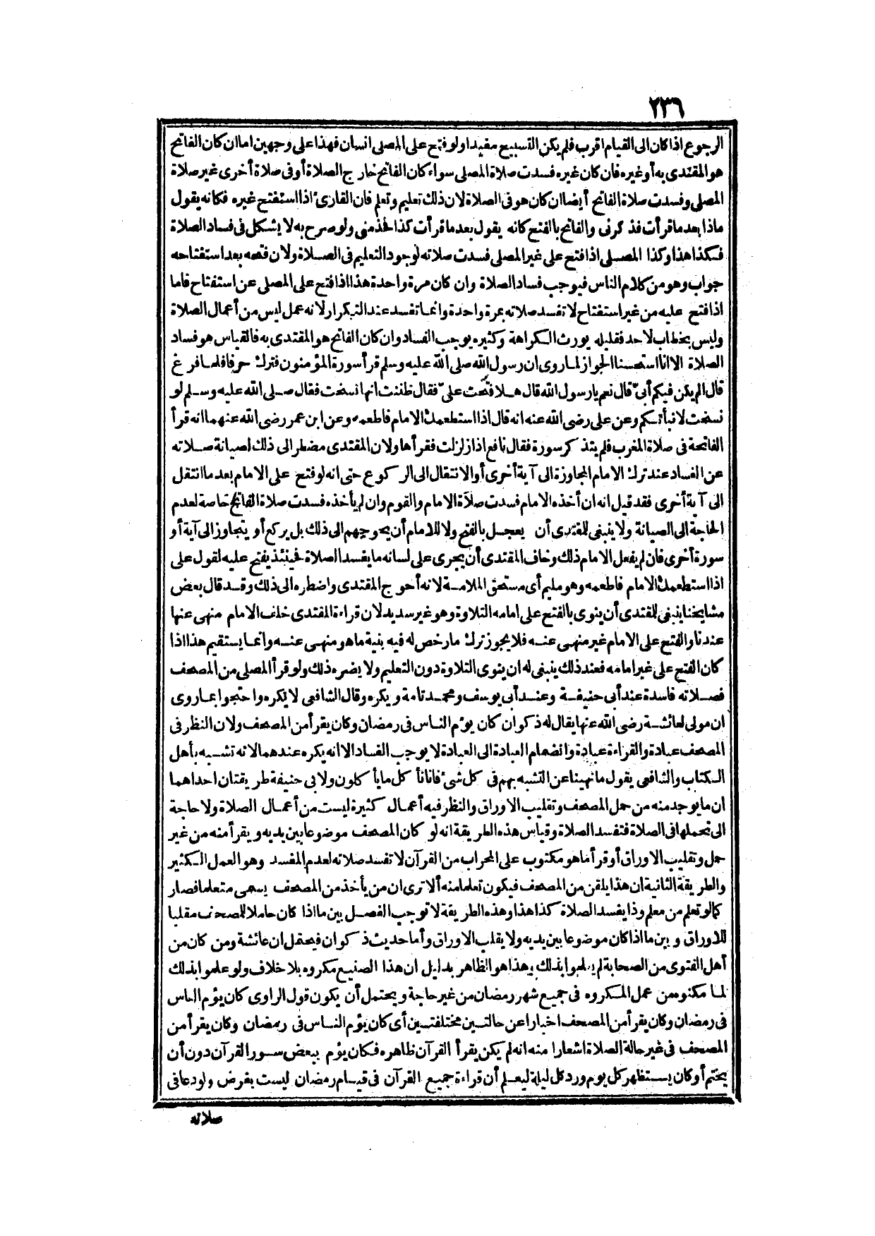 وَلَوْ فَتَحَ عَلَى الْمُصَلِّي إنْسَانٌ فَهَذَا عَلَى وَجْهَيْنِ: إمَّا أَنْ كَانَ الْفَاتِحُ هُوَ الْمُقْتَدِيَ بِهِ أَوْ غَيْرَهُ فَإِنْ كَانَ غَيْرَهُ فَسَدَتْ صَلَاةُ الْمُصَلِّي سَوَاءٌ كَانَ الْفَاتِحُ خَارِجَ الصَّلَاةِ أَوْ فِي صَلَاةٍ أُخْرَى غَيْرِ صَلَاةِ الْمُصَلِّي وَفَسَدَتْ صَلَاةُ الْفَاتِحِ أَيْضًا إنْ كَانَ هُوَ فِي الصَّلَاةِ؛ لِأَنَّ ذَلِكَ تَعْلِيمٌ وَتَعَلُّمٌ فَإِنَّ الْقَارِئَ إذَا اسْتَفْتَحَ غَيْرَهُ فَكَأَنَّهُ يَقُولُ: مَاذَا بَعْدَ مَا قَرَأْتَ فَذَكِّرْنِي، وَالْفَاتِحُ بِالْفَتْحِ كَأَنَّهُ يَقُولُ: بَعْدَ مَا قَرَأْتَ كَذَا فَخُذْ مِنِّي.