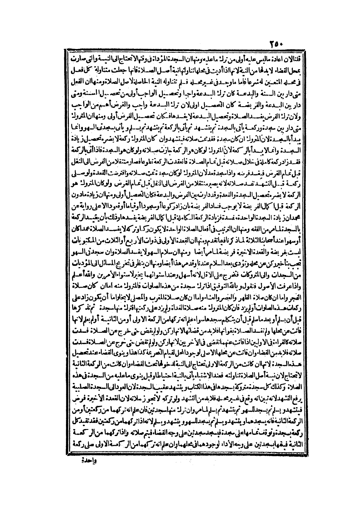 وَمِنْهَا أَنَّ التَّرْتِيبَ فِي أَفْعَالِ الصَّلَاةِ الْوَاحِدَةِ لَا يَكُونُ رُكْنًا وَتَرْكُهُ لَا يُفْسِدُ الصَّلَاةَ عَمْدًا كَانَ أَوْ سَهْوًا عِنْدَ أَصْحَابِنَا الثَّلَاثَةِ لِمَا ذَكَرْنَا فِيمَا تَقَدَّمَ.