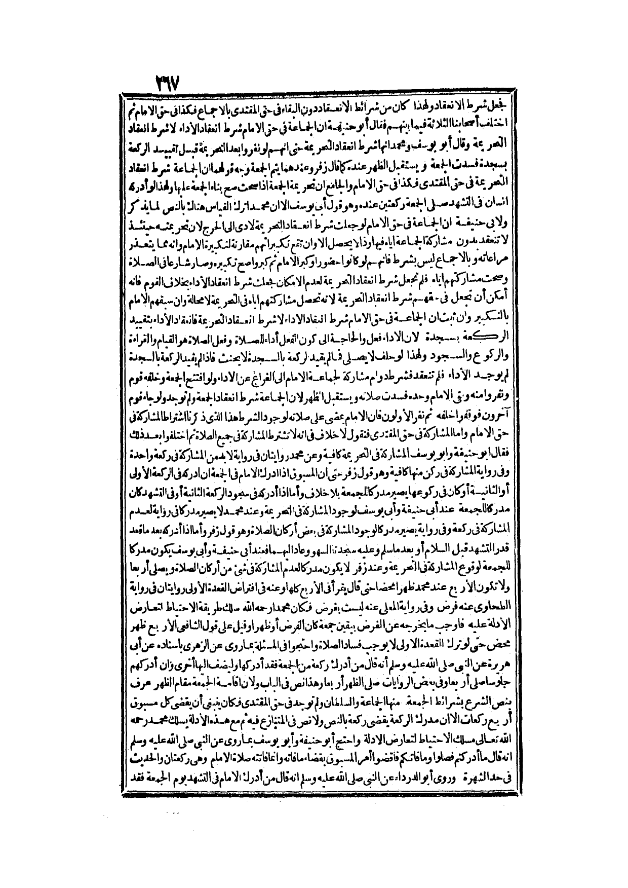 فَجُعِلَ شَرْطُ الِانْعِقَادِ وَلِهَذَا كَانَ مِنْ شَرَائِطِ الِانْعِقَادِ دُونَ الْبَقَاءِ فِي حَقِّ الْمُقْتَدِي بِالْإِجْمَاعِ فَكَذَا فِي حَقِّ الْإِمَامِ ثُمَّ اخْتَلَفَ أَصْحَابُنَا الثَّلَاثَةُ فِيمَا بَيْنَهُمْ فَقَالَ أَبُو حَنِيفَةَ: إنَّ الْجَمَاعَةَ فِي حَقِّ الْإِمَامِ شَرْطُ انْعِقَادِ الْأَدَاءِ لَا شَرْطُ انْعِقَادِ التَّحْرِيمَةِ، وَقَالَ أَبُو يُوسُفَ وَمُحَمَّدٌ: إنَّهَا شَرْطُ انْعِقَادِ التَّحْرِيمَةِ حَتَّى إنَّهُمْ لَوْ نَفَرُوا بَعْدَ التَّحْرِيمَةِ قَبْلَ تَقْيِيدِ الرَّكْعَةِ بِسَجْدَةٍ فَسَدَتْ الْجُمُعَةُ وَيَسْتَقْبِلُ الظُّهْرَ عِنْدَهُ كَمَا قَالَ زُفَرُ وَعِنْدَهُمَا يُتِمُّ الْجُمُعَةَ.