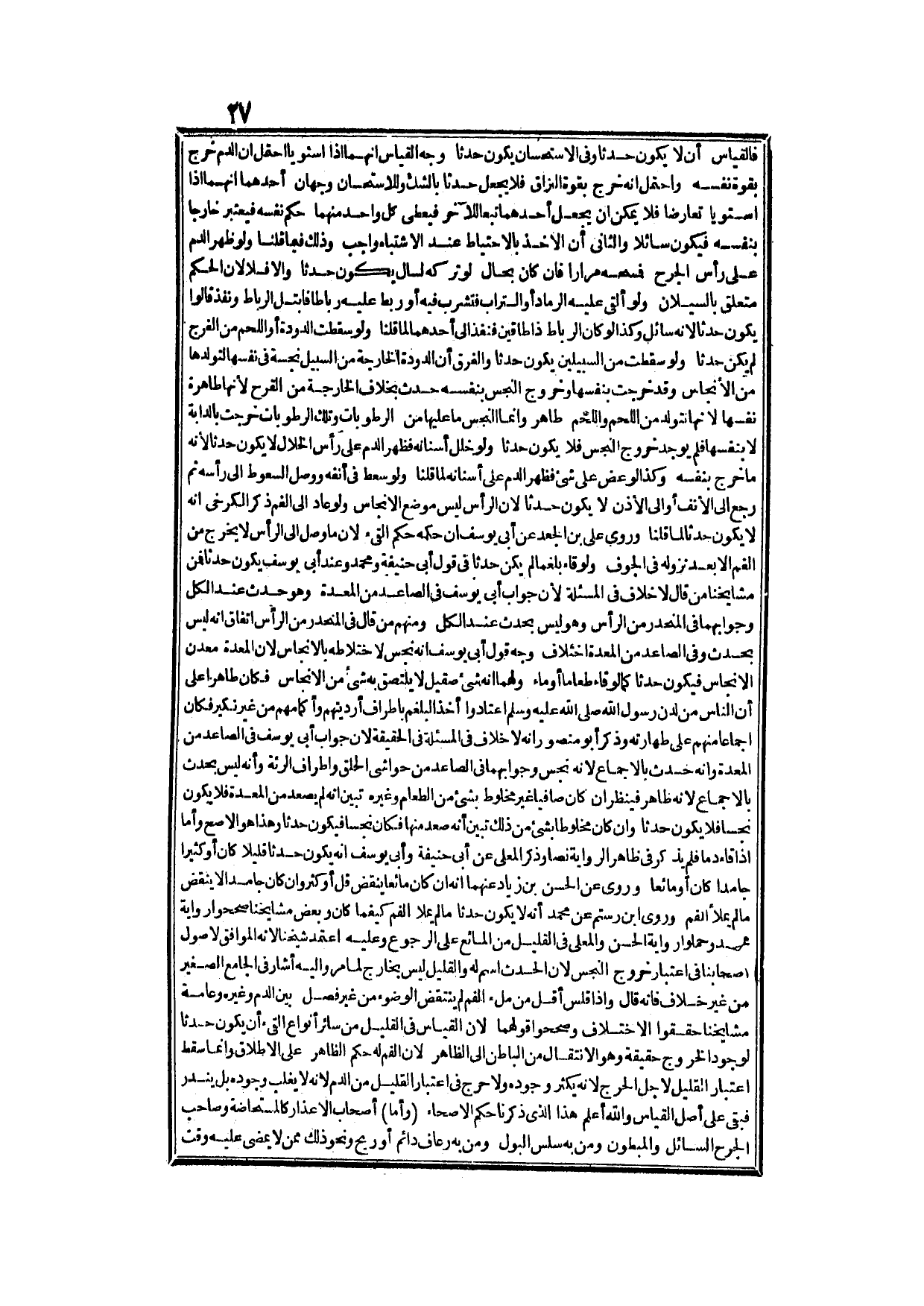 وَعَلَيْهِ اعْتَمَدَ شَيْخُنَا، لِأَنَّهُ الْمُوَافِقُ لِأُصُولِ أَصْحَابِنَا فِي اعْتِبَارِ خُرُوجِ النَّجَسِ، لِأَنَّ الْحَدَثَ اسْمٌ لَهُ، وَالْقَلِيلُ لَيْسَ بِخَارِجٍ لِمَا مَرَّ، وَإِلَيْهِ أَشَارَ فِي الْجَامِعِ الصَّغِيرِ مِنْ غَيْرِ خِلَافٍ فَإِنَّهُ قَالَ، وَإِذَا قَلَسَ أَقَلَّ مِنْ مِلْءِ الْفَمِ لَمْ يُنْتَقَضْ الْوُضُوءُ مِنْ غَيْرِ فَصْلٍ بَيْنَ الدَّمِ، وَغَيْرِهِ، وَعَامَّةُ مَشَايِخِنَا حَقَّقُوا الِاخْتِلَافَ، وَصَحَّحُوا قَوْلَهُمَا، لِأَنَّ الْقِيَاسَ فِي الْقَلِيلِ مِنْ سَائِرِ أَنْوَاعِ الْقَيْءِ أَنْ يَكُونَ حَدَثًا لِوُجُودِ الْخُرُوجِ حَقِيقَةً، وَهُوَ الِانْتِقَالُ مِنْ الْبَاطِنِ إلَى الظَّاهِرِ، لِأَنَّ الْفَمَ لَهُ حُكْمُ الظَّاهِرِ عَلَى الْإِطْلَاقِ، وَإِنَّمَا سَقَطَ اعْتِبَارُ الْقَلِيلِ لِأَجْلِ الْحَرَجِ لِأَنَّهُ يَكْثُرُ وُجُودُهُ.