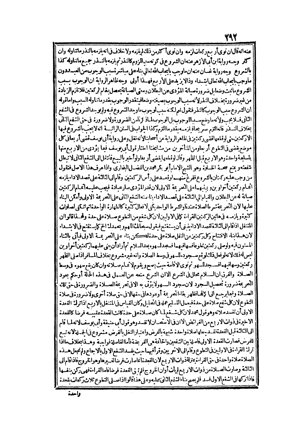 عَنْهُ أَنَّهُ قَالَ: إنْ نَوَى أَرْبَعَ رَكَعَاتٍ لَزِمَهُ وَإِنْ نَوَى أَكْثَرَ مِنْ ذَلِكَ لَمْ يَلْزَمْهُ، وَلَا خِلَافَ فِي أَنَّهُ يَلْزَمُهُ بِالنَّذْرِ مَا تَنَاوَلَهُ، وَإِنْ كَثُرَ وَجْهُ رِوَايَةِ ابْنِ أَبِي الْأَزْهَرِ عَنْهُ أَنَّ الشُّرُوعَ فِي كَوْنِهِ سَبَبًا لِلُّزُومِ كَالنَّذْرِ ثُمَّ يَلْزَمُهُ بِالنَّذْرِ جَمِيعُ مَا تَنَاوَلَهُ وَكَذَا بِالشُّرُوعِ، وَجْهُ رِوَايَةِ غَسَّانَ عَنْهُ أَنَّ مَا وَجَبَ بِإِيجَابِ اللَّهِ تَعَالَى بِنَاءً عَلَى مُبَاشَرَةِ سَبَبِ الْوُجُوبِ مِنْ الْعَبْدِ دُونَ مَا وَجَبَ بِإِيجَابِ اللَّهِ تَعَالَى ابْتِدَاءً وَذَا لَا يَزِيدُ عَلَى الْأَرْبَعِ فَهَذَا أَوْلَى، وَجْهُ ظَاهِرِ الرِّوَايَةِ أَنَّ الْوُجُوبَ بِسَبَبِ الشُّرُوعِ مَا ثَبَتَ وَضْعًا بَلْ ضَرُورَةُ صِيَانَةِ الْمُؤَدِّي عَنْ الْبُطْلَانِ، وَمَعْنَى الصِّيَانَةِ يَحْصُلُ بِتَمَامِ الرَّكْعَتَيْنِ فَلَا تَلْزَمُ الزِّيَادَةُ مِنْ غَيْرِ ضَرُورَةٍ بِخِلَافِ النَّذْرِ؛ لِأَنَّهُ سَبَبُ الْوُجُوبِ بِصِيغَتِهِ وَضْعًا فَيَتَقَدَّرُ الْوُجُوبُ بِقَدْرِ مَا تَنَاوَلَهُ السَّبَبُ.