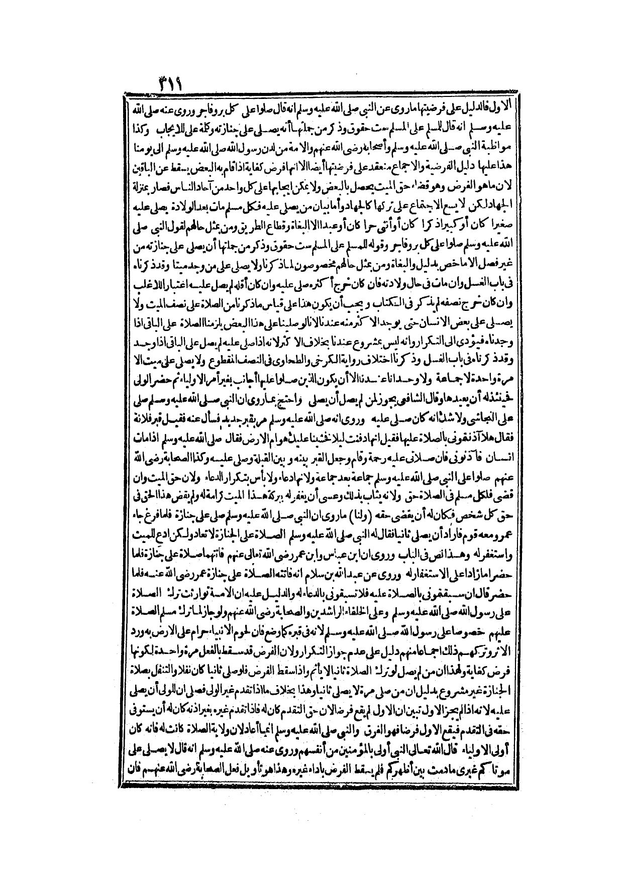 الْأَوَّلُ: فَالدَّلِيلُ عَلَى فَرْضِيَّتِهَا مَا رُوِيَ عَنْ النَّبِيِّ - صَلَّى اللَّهُ عَلَيْهِ وَسَلَّمَ - أَنَّهُ قَالَ: «صَلُّوا عَلَى كُلِّ بَرٍّ وَفَاجِرٍ» وَرُوِيَ عَنْهُ - صَلَّى اللَّهُ عَلَيْهِ وَسَلَّمَ - أَنَّهُ قَالَ: «لِلْمُسْلِمِ عَلَى الْمُسْلِمِ سِتُّ حُقُوقٍ» وَذَكَرَ مِنْ جُمْلَتِهَا أَنَّهُ «يُصَلَّى عَلَى جِنَازَتِهِ» وَكَلِمَةُ عَلَى لِلْإِيجَابِ وَكَذَا مُوَاظَبَةُ النَّبِيِّ - صَلَّى اللَّهُ عَلَيْهِ وَسَلَّمَ - وَأَصْحَابِهِ - رَضِيَ اللَّهُ عَنْهُمْ - وَالْأُمَّةِ مِنْ لَدُنْ رَسُولِ اللَّهِ - صَلَّى اللَّهُ عَلَيْهِ وَسَلَّمَ - إلَى يَوْمِنَا هَذَا عَلَيْهَا، دَلِيلُ الْفَرْضِيَّةِ وَالْإِجْمَاعُ مُنْعَقِدٌ عَلَى فَرْضِيَّتِهَا أَيْضًا إلَّا أَنَّهَا فَرْضُ كِفَايَةٍ إذَا قَامَ بِهِ الْبَعْضُ يَسْقُطُ عَنْ الْبَاقِينَ؛ لِأَنَّ مَا هُوَ الْفَرْضُ، وَهُوَ قَضَاءُ حَقِّ الْمَيِّتِ يَحْصُلُ بِالْبَعْضِ، وَلَا يُمْكِنُ إيجَابُهَا عَلَى كُلِّ وَاحِدٍ مِنْ آحَادِ النَّاسِ فَصَارَ بِمَنْزِلَةِ الْجِهَادِ، لَكِنْ لَا يَسَعُ الِاجْتِمَاعُ عَلَى تَرْكِهَا كَالْجِهَادِ.