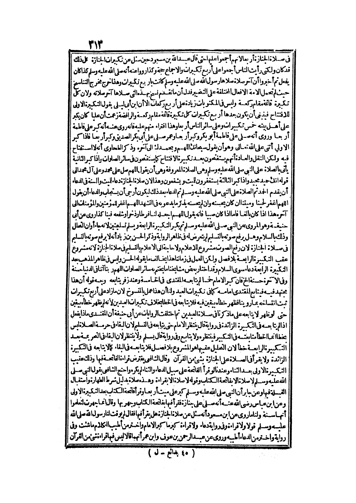 إلَّا أَنَّ ابْنَ أَبِي لَيْلَى يَقُولُ: التَّكْبِيرَةُ الْأُولَى لِلِافْتِتَاحِ فَيَنْبَغِي أَنْ يَكُونَ بَعْدَهَا أَرْبَعُ تَكْبِيرَاتٍ، كُلُّ تَكْبِيرَةٍ قَائِمَةٌ مَقَامَ رَكْعَةٍ، وَالرَّافِضَةُ زَعَمَتْ أَنَّ عَلِيًّا كَانَ يُكَبِّرُ عَلَى أَهْلِ بَيْتِهِ خَمْسَ تَكْبِيرَاتٍ، وَعَلَى سَائِرِ النَّاسِ أَرْبَعًا، وَهَذَا افْتِرَاءٌ مِنْهُمْ عَلَيْهِ فَإِنَّهُ رُوِيَ عَنْهُ أَنَّهُ كَبَّرَ عَلَى فَاطِمَةَ أَرْبَعًا.