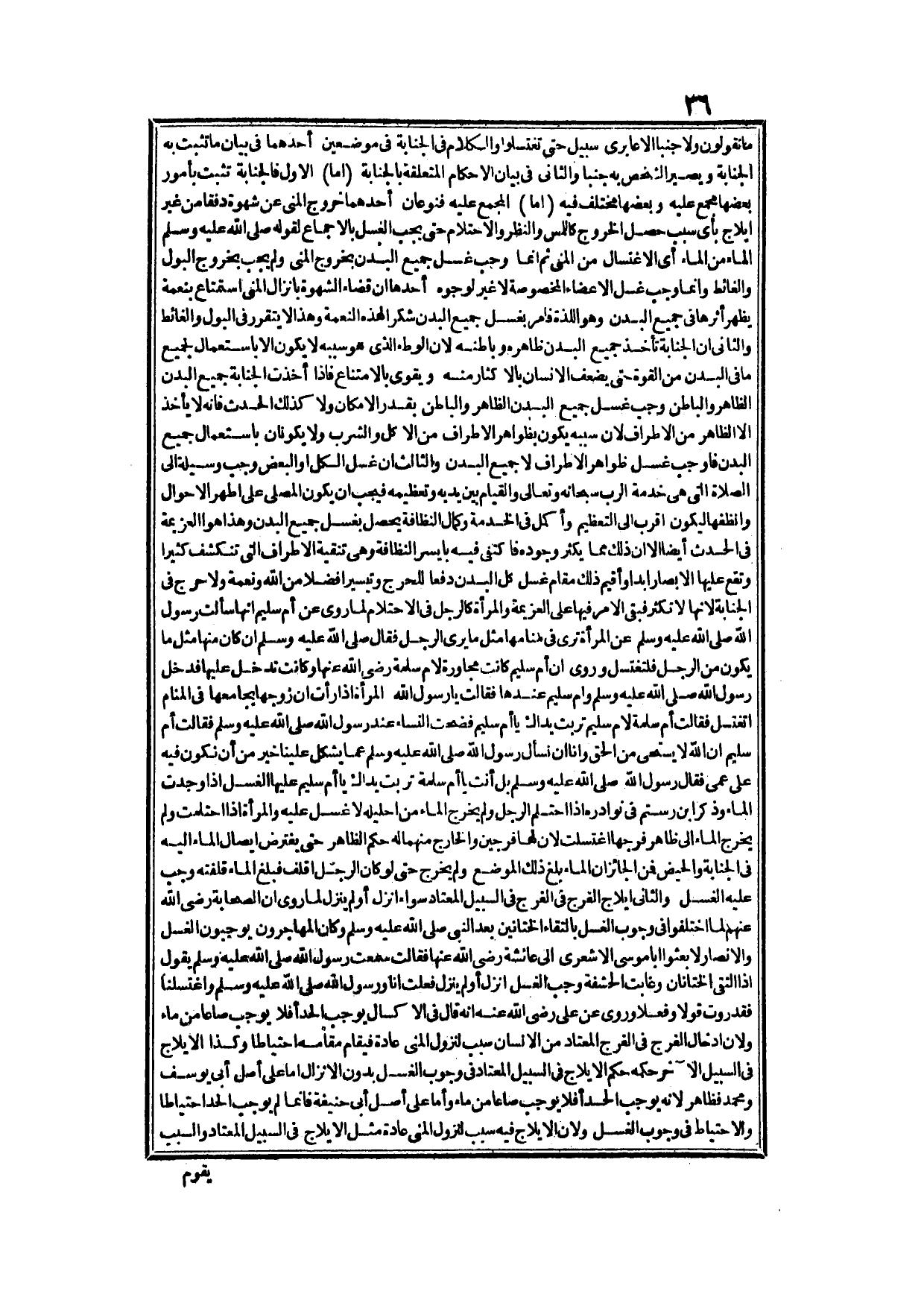 وَرُوِيَ أَنَّ «أُمَّ سُلَيْمٍ كَانَتْ مُجَاوِرَةً لِأُمِّ سَلَمَةَ - رَضِيَ اللَّهُ عَنْهَا - وَكَانَتْ تَدْخُلُ عَلَيْهَا فَدَخَلَ رَسُولُ اللَّهِ - صَلَّى اللَّهُ عَلَيْهِ وَسَلَّمَ -، وَأُمُّ سُلَيْمٍ عِنْدَهَا فَقَالَتْ: يَا رَسُولَ اللَّهِ الْمَرْأَةُ إذَا رَأَتْ أَنَّ زَوْجَهَا يُجَامِعُهَا فِي الْمَنَامِ أَتَغْتَسِلُ فَقَالَتْ أُمُّ سَلَمَةَ لِأُمِّ سُلَيْمٍ تَرِبَتْ يَدَاك يَا أُمَّ سُلَيْمٍ فَضَحِكَتْ النِّسَاءُ عِنْدَ رَسُولِ اللَّهِ - صَلَّى اللَّهُ عَلَيْهِ وَسَلَّمَ - فَقَالَتْ أُمُّ سُلَيْمٍ: إنَّ اللَّهَ لَا يَسْتَحْيِ مِنْ الْحَقِّ، وَإِنَّا إنْ نَسْأَلْ رَسُولَ اللَّهِ - صَلَّى اللَّهُ عَلَيْهِ وَسَلَّمَ - عَمَّا يُشْكِلُ عَلَيْنَا خَيْرٌ مِنْ أَنْ نَكُونَ فِيهِ عَلَى عَمًى فَقَالَ رَسُولُ اللَّهِ - صَلَّى اللَّهُ عَلَيْهِ وَسَلَّمَ -: بَلْ أَنْتِ يَا أُمَّ سَلَمَةَ تَرِبَتْ يَدَاك يَا أُمَّ سُلَيْمٍ عَلَيْهَا الْغُسْلُ إذَا وَجَدَتْ الْمَاءَ» .