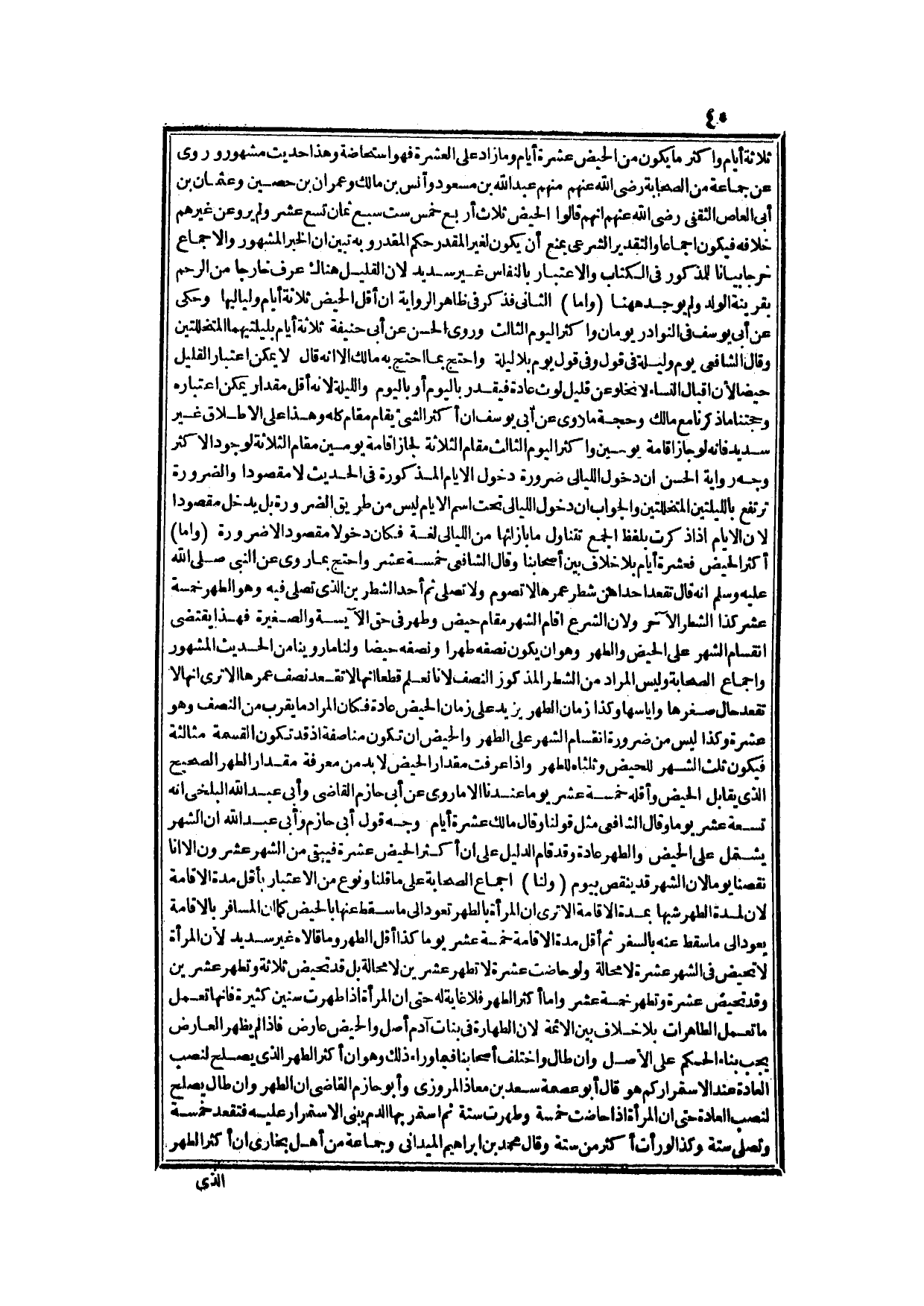 وَرُوِيَ عَنْ جَمَاعَةٍ مِنْ الصَّحَابَةِ - رَضِيَ اللَّهُ عَنْهُمْ - مِنْهُمْ عَبْدُ اللَّهِ بْنُ مَسْعُودٍ، وَأَنَسُ بْنُ مَالِكٍ، وَعِمْرَانُ بْنُ حُصَيْنٍ، وَعُثْمَانُ بْنُ أَبِي الْعَاصِ الثَّقَفِيُّ - رَضِيَ اللَّهُ عَنْهُمْ - أَنَّهُمْ قَالُوا: الْحَيْضُ ثَلَاثٌ أَرْبَعٌ خَمْسٌ سِتٌّ ثَمَانٌ تِسْعٌ عَشْرٌ، وَلَمْ يُرْوَ عَنْ غَيْرِهِمْ خِلَافُهُ فَيَكُونُ إجْمَاعًا، وَالتَّقْدِيرُ الشَّرْعِيُّ يَمْنَعُ أَنْ يَكُونَ لِغَيْرِ الْمُقَدَّرِ حُكْمُ الْمَقْدُور بِهِ تَبَيَّنَ أَنَّ الْخَبَرَ الْمَشْهُورَ، وَالْإِجْمَاعَ خَرَجَا بَيَانًا لِلْمَذْكُورِ فِي الْكِتَابِ، وَالِاعْتِبَارُ بِالنِّفَاسِ غَيْرُ سَدِيدٍ؛ لِأَنَّ الْقَلِيلَ هُنَاكَ عُرِفَ خَارِجًا مِنْ الرَّحِمِ بِقَرِينَةِ الْوَلَدِ، وَلَمْ يُوجَدْ هَهُنَا.