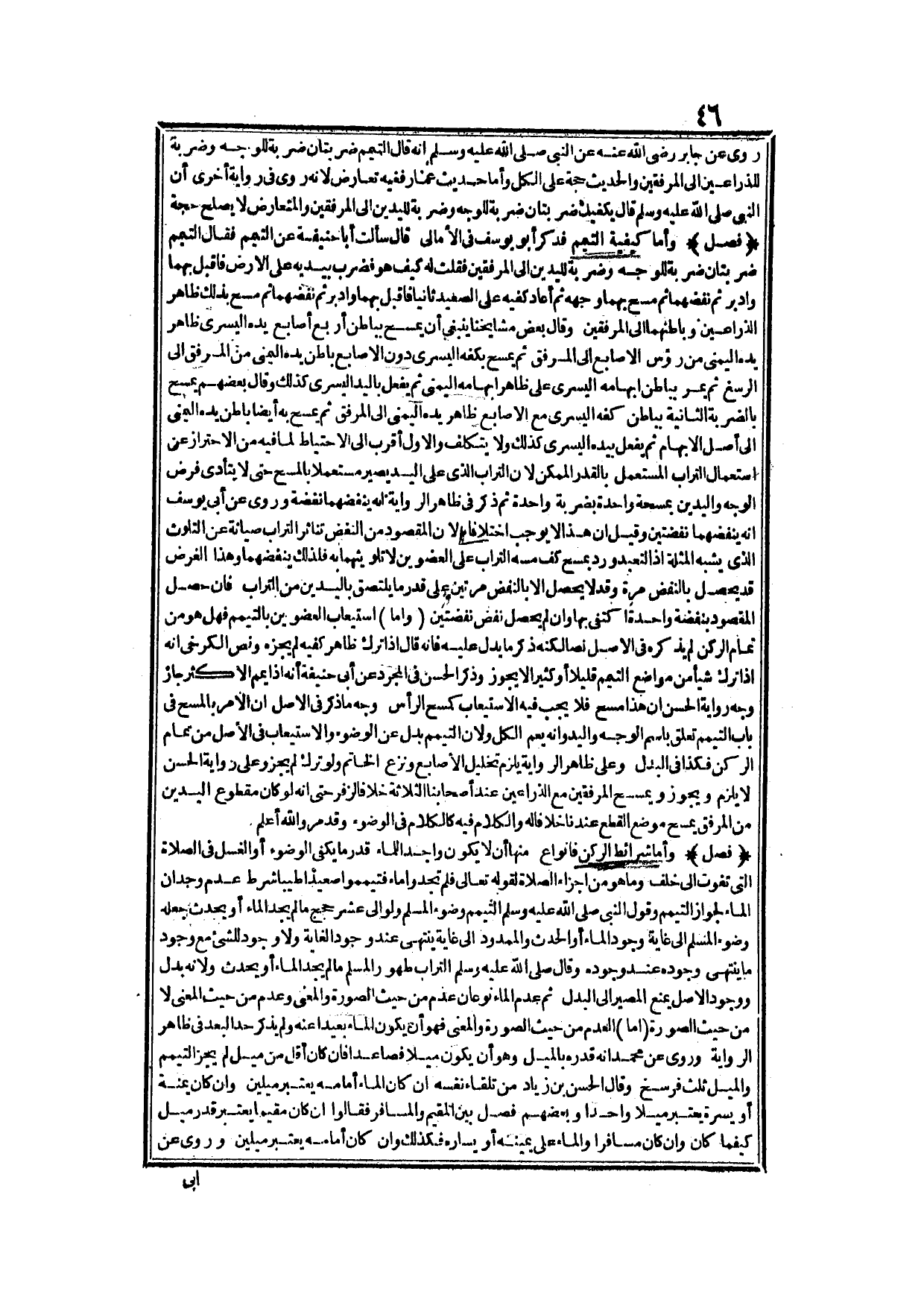 وَأَمَّا كَيْفِيَّةُ التَّيَمُّمِ فَذَكَرَ أَبُو يُوسُفَ فِي الْأَمَالِي قَالَ: سَأَلْتُ أَبَا حَنِيفَةَ عَنْ التَّيَمُّمِ فَقَالَ: التَّيَمُّمُ ضَرْبَتَانِ ضَرْبَةٌ لِلْوَجْهِ وَضَرْبَةٌ لِلْيَدَيْنِ إلَى الْمِرْفَقَيْنِ، فَقُلْت لَهُ: كَيْفَ هُوَ؟ فَضَرَبَ بِيَدَيْهِ عَلَى الْأَرْضِ فَأَقْبَلَ بِهِمَا، وَأَدْبَرَ، ثُمَّ نَفَضَهُمَا، ثُمَّ مَسَحَ بِهِمَا وَجْهَهُ، ثُمَّ أَعَادَ كَفَّيْهِ عَلَى الصَّعِيدِ ثَانِيًا فَأَقْبَلَ بِهِمَا، وَأَدْبَرَ، ثُمَّ نَفَضَهُمَا، ثُمَّ مَسَحَ بِذَلِكَ ظَاهِرَ الذِّرَاعَيْنِ، وَبَاطِنَهُمَا إلَى الْمِرْفَقَيْنِ.