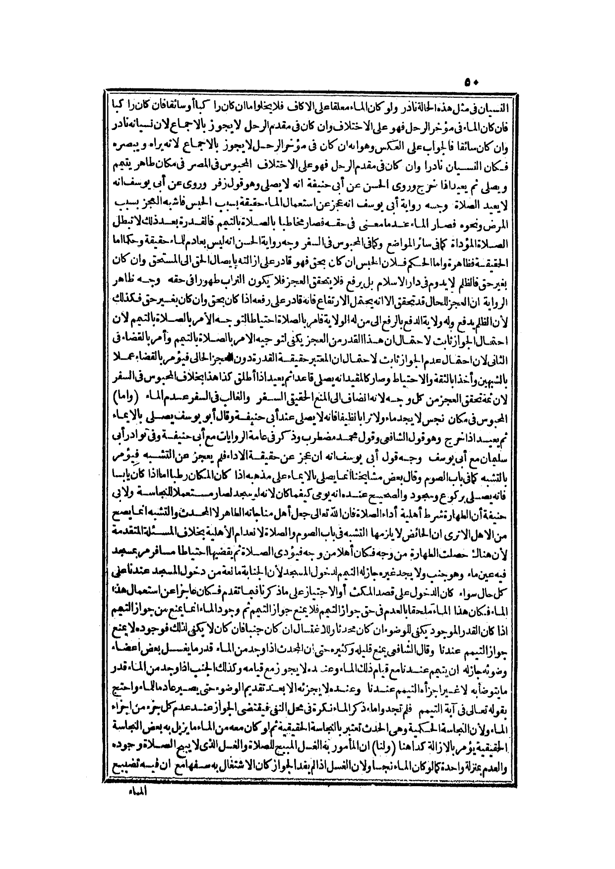 وَرُوِيَ عَنْ أَبِي يُوسُفَ أَنَّهُ لَا يُعِيدُ الصَّلَاةَ وَجْهُ رِوَايَةِ أَبِي يُوسُفَ أَنَّهُ عَجَزَ عَنْ اسْتِعْمَالِ الْمَاءِ حَقِيقَةً بِسَبَبِ الْحَبْسِ، فَأَشْبَهُ الْعَجْزَ بِسَبَبِ الْمَرَضِ، وَنَحْوِهِ، فَصَارَ الْمَاءُ عَدَمًا مَعْنًى فِي حَقِّهِ، فَصَارَ مُخَاطَبًا بِالصَّلَاةِ بِالتَّيَمُّمِ، فَالْقُدْرَةُ بَعْدَ ذَلِكَ لَا تُبْطِلُ الصَّلَاةَ الْمُؤَدَّاةَ كَمَا فِي سَائِرِ الْمَوَاضِعِ، وَكَمَا فِي الْمَحْبُوسِ فِي السَّفَرِ، وَجْهُ رِوَايَةِ الْحَسَنِ أَنَّهُ لَيْسَ بِعَادِمٍ لِلْمَاءِ حَقِيقَةً، وَحُكْمًا أَمَّا، الْحَقِيقَةُ فَظَاهِرَةٌ.