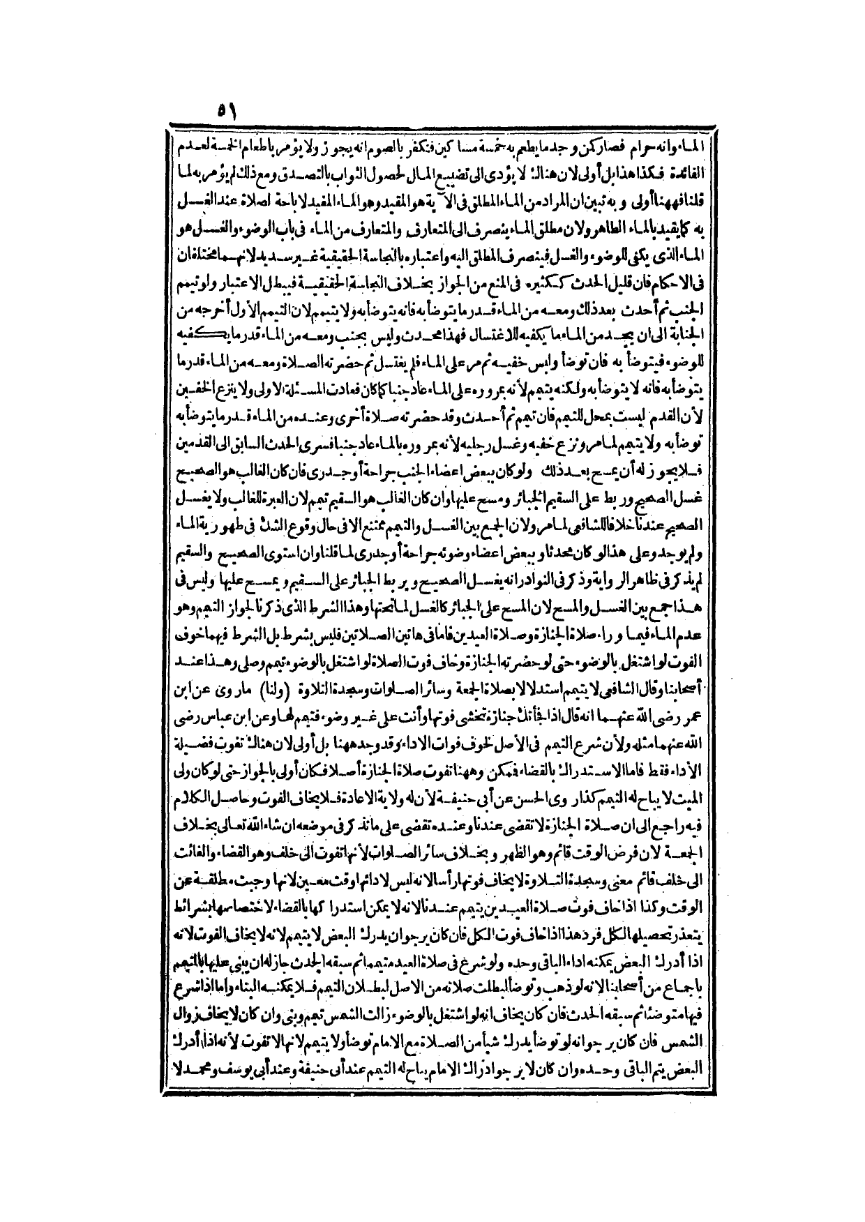 وَقَدْ حَضَرَتْهُ صَلَاةٌ أُخْرَى وَعِنْدَهُ مِنْ الْمَاءِ قَدْرُ مَا يَتَوَضَّأُ بِهِ تَوَضَّأَ بِهِ وَلَا يَتَيَمَّمُ لِمَا مَرَّ، وَنَزَعَ خُفَّيْهِ وَغَسَلَ رِجْلَيْهِ؛ لِأَنَّهُ بِمُرُورِهِ بِالْمَاءِ عَادَ جُنُبًا فَسَرَى الْحَدَثُ السَّابِقُ إلَى الْقَدَمَيْنِ، فَلَا يَجُوزُ لَهُ أَنْ يَمْسَحَ بَعْدَ ذَلِكَ، وَلَوْ كَانَ بِبَعْضِ أَعْضَاءِ الْجُنُبِ جِرَاحَةٌ، أَوْ جُدَرِيٌّ فَإِنْ كَانَ الْغَالِبُ هُوَ الصَّحِيحُ غَسَلَ الصَّحِيحَ وَرَبَطَ عَلَى السَّقِيمِ الْجَبَائِرَ، وَمَسَحَ عَلَيْهَا، وَإِنْ كَانَ الْغَالِبُ هُوَ السَّقِيمَ تَيَمَّمَ؛ لِأَنَّ الْعِبْرَةَ لِلْغَالِبِ، وَلَا يَغْسِلُ الصَّحِيحَ عِنْدَنَا خِلَافًا لِلشَّافِعِيِّ لِمَا مَرَّ؛ وَلِأَنَّ الْجَمْعَ بَيْنَ الْغُسْلِ وَالتَّيَمُّمِ مُمْتَنِعٌ إلَّا فِي حَالِ وُقُوعِ الشَّكِّ فِي طَهُورِيَّةِ الْمَاءِ، وَلَمْ يُوجَدْ، وَعَلَى هَذَا لَوْ كَانَ مُحْدِثًا وَبِبَعْضِ أَعْضَاءِ وُضُوئِهِ جِرَاحَةٌ، أَوْ جُدَرِيٌّ؛ لِمَا قُلْنَا، وَإِنْ اسْتَوَى الصَّحِيحُ وَالسَّقِيمُ لَمْ يُذْكَرْ فِي ظَاهِرِ الرِّوَايَةِ، وَذُكِرَ فِي النَّوَادِرِ أَنَّهُ يَغْسِلُ الصَّحِيحَ، وَيَرْبِطُ الْجَبَائِرَ عَلَى السَّقِيمِ، وَيَمْسَحُ عَلَيْهَا، وَلَيْسَ فِي هَذَا جَمْعٌ بَيْنَ الْغَسْلِ وَالْمَسْحِ؛ لِأَنَّ الْمَسْحَ عَلَى الْجَبَائِرِ كَالْغَسْلِ لِمَا تَحْتَهَا، وَهَذَا الشَّرْطُ الَّذِي ذَكَرْنَا لِجَوَازِ التَّيَمُّمِ، وَهُوَ عَدَمُ الْمَاءِ فِيمَا وَرَاءَ صَلَاةِ الْجِنَازَةِ وَصَلَاةِ الْعِيدَيْنِ، فَأَمَّا فِي هَاتَيْنِ الصَّلَاتَيْنِ فَلَيْسَ بِشَرْطٍ، بَلْ الشَّرْطُ فِيهِمَا خَوْفُ الْفَوْتِ لَوْ اشْتَغَلَ بِالْوُضُوءِ، حَتَّى لَوْ حَضَرَتْهُ الْجِنَازَةُ وَخَافَ فَوْتَ الصَّلَاةِ لَوْ اشْتَغَلَ بِالْوُضُوءِ تَيَمَّمَ وَصَلَّى، وَهَذَا عِنْدَ أَصْحَابِنَا.