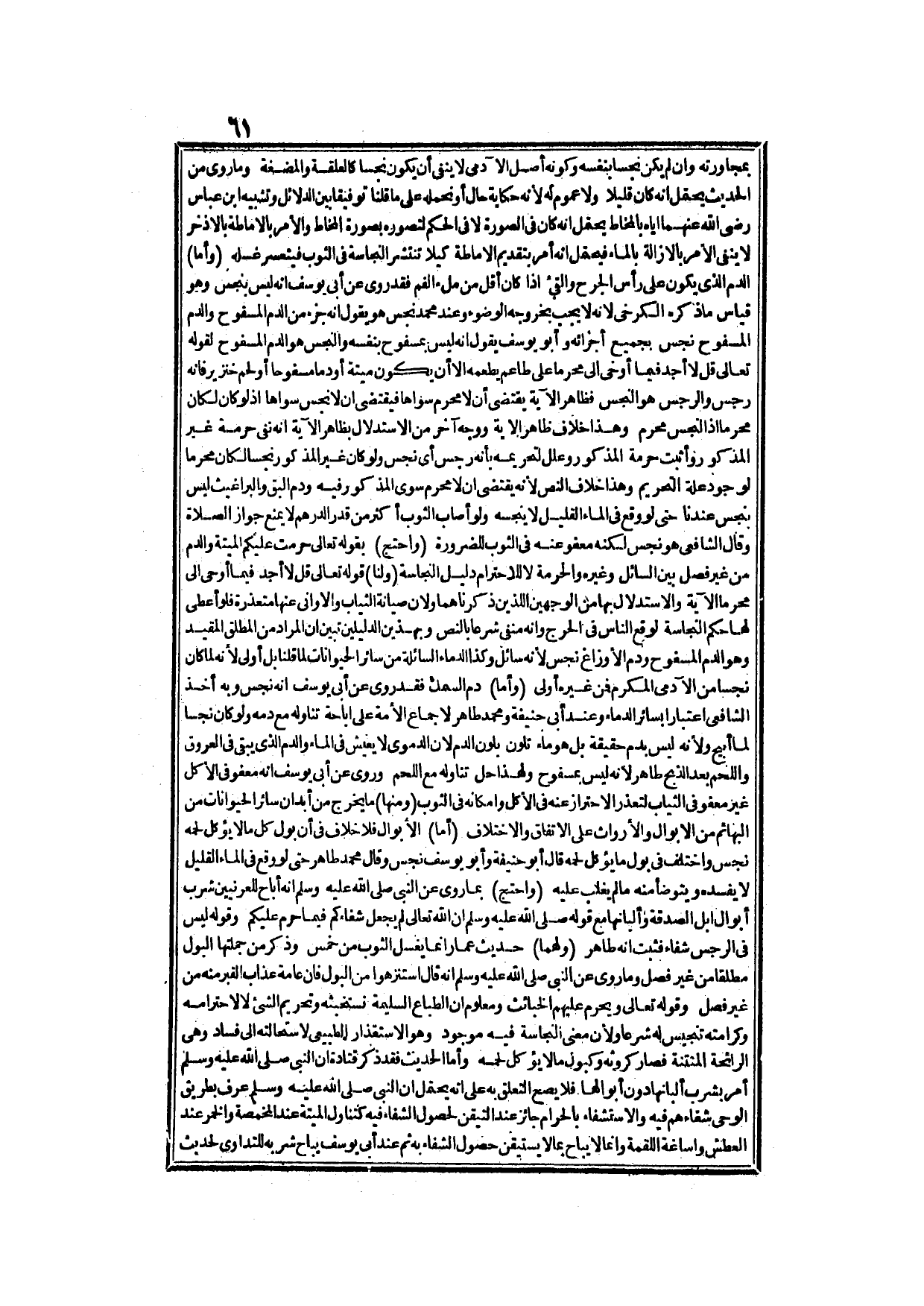 وَأَمَّا الْحَدِيثُ فَقَدْ ذَكَرَ قَتَادَةَ أَنَّ «النَّبِيَّ - صَلَّى اللَّهُ عَلَيْهِ وَسَلَّمَ - أَمَرَ بِشُرْبِ أَلْبَانِهَا دُونَ أَبْوَالِهَا» فَلَا يَصِحُّ التَّعَلُّقُ بِهِ، عَلَى أَنَّهُ يُحْتَمَلُ أَنَّ النَّبِيَّ - صَلَّى اللَّهُ عَلَيْهِ وَسَلَّمَ - عَرَفَ بِطَرِيقِ الْوَحْيِ شِفَاءَهُمْ فِيهِ، وَالِاسْتِشْفَاءُ بِالْحَرَامِ جَائِزٌ عِنْدَ التَّيَقُّنِ لِحُصُولِ الشِّفَاءِ فِيهِ، كَتَنَاوُلِ الْمَيْتَةِ عِنْدَ الْمَخْمَصَةِ، وَالْخَمْرِ عِنْد الْعَطَشِ، وَإِسَاغَةِ اللُّقْمَةِ وَإِنَّمَا لَا يُبَاحُ بِمَا لَا يُسْتَيْقَنُ حُصُولُ الشِّفَاءِ بِهِ، ثُمَّ عِنْدَ أَبِي يُوسُفَ يُبَاحُ شُرْبُهُ لِلتَّدَاوِي لِحَدِيثِ