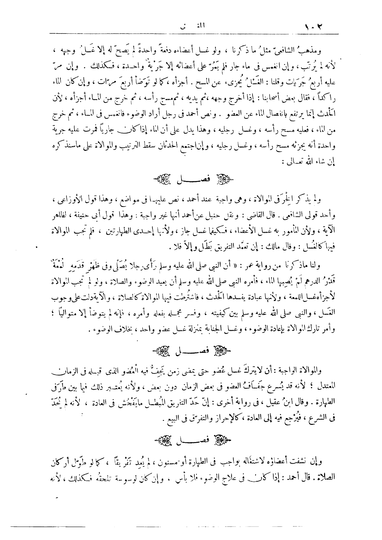 (١٨٠) فَصْلٌ: وَلَمْ يَذْكُرْ الْخِرَقِيِّ الْمُوَالَاةَ، وَهِيَ وَاجِبَةٌ عِنْدَ أَحْمَدَ نَصَّ عَلَيْهَا فِي مَوَاضِعَ. وَهَذَا قَوْلُ الْأَوْزَاعِيِّ وَأَحَدُ قَوْلَيْ الشَّافِعِيِّ قَالَ الْقَاضِي: وَنَقَلَ حَنْبَلُ عَنْ أَحْمَدَ أَنَّهَا غَيْرُ وَاجِبَةٍ. وَهَذَا قَوْلُ أَبِي حَنِيفَةَ لِظَاهِرِ الْآيَةِ؛ وَلِأَنَّ الْمَأْمُورَ بِهِ غَسْلُ الْأَعْضَاءِ، فَكَيْفَمَا غَسَلَ جَازَ؛ وَلِأَنَّهَا إحْدَى الطَّهَارَتَيْنِ، فَلَمْ تَجِبْ الْمُوَالَاةُ فِيهَا كَالْغُسْلِ.