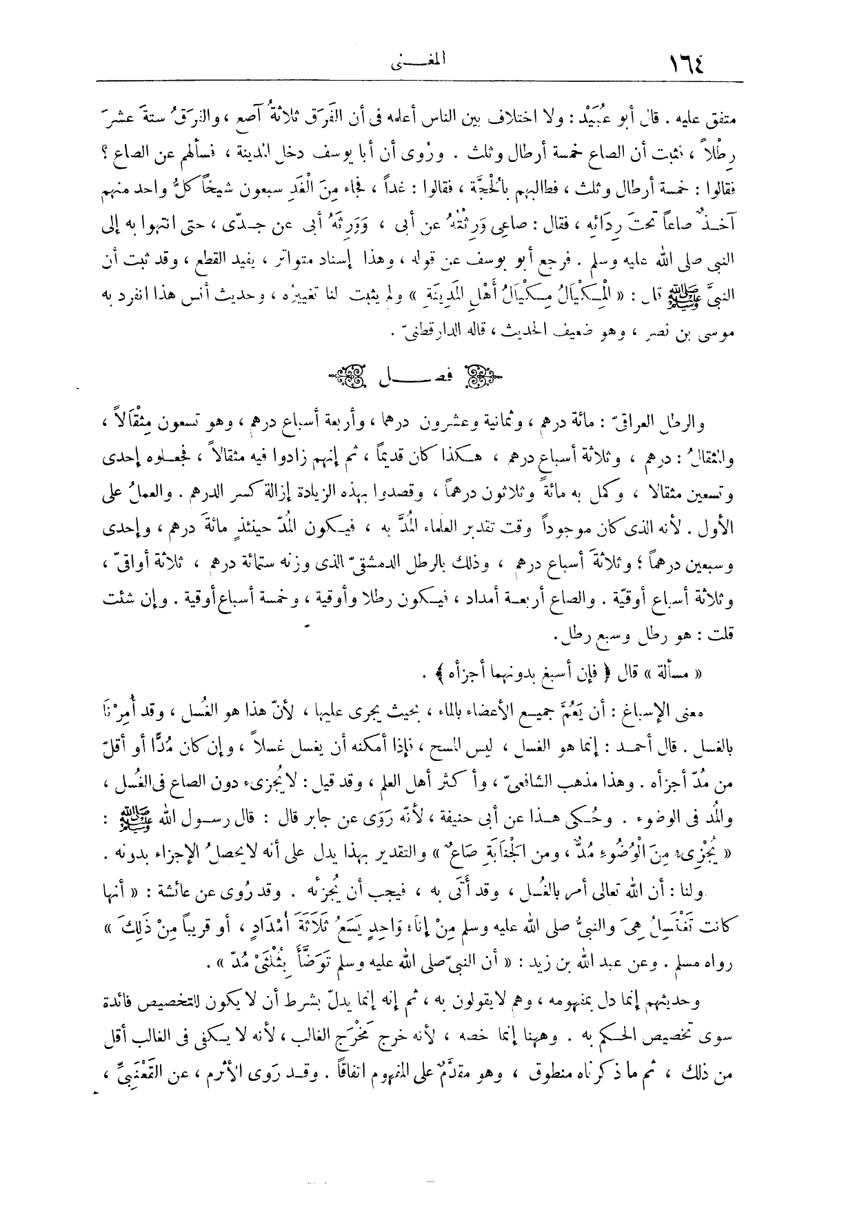 (٣١٤) فَصْلٌ: وَالرِّطْلُ الْعِرَاقِيُّ مِائَةُ دِرْهَمٍ وَثَمَانِيَةٌ وَعِشْرُونَ دِرْهَمًا وَأَرْبَعَةُ أَسْبَاعِ دِرْهَمٍ، وَهُوَ تِسْعُونَ مِثْقَالًا.