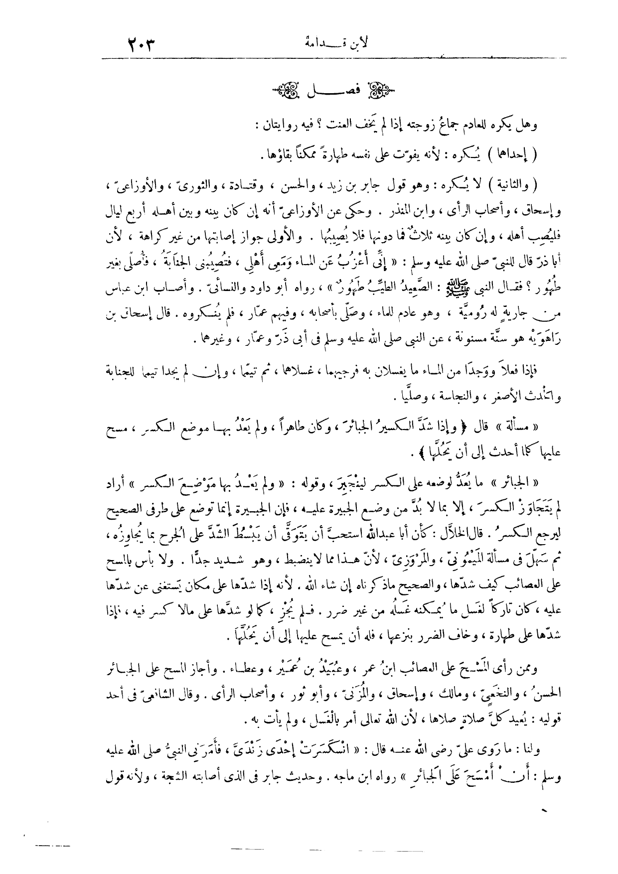 (٣٩٦) مَسْأَلَةٌ: قَالَ: (وَإِذَا شَدَّ الْكَسِيرُ الْجَبَائِرَ، وَكَانَ طَاهِرًا وَلَمْ يَعْدُ بِهَا مَوْضِعَ الْكَسْرِ، مَسَحَ عَلَيْهَا كُلَّمَا أَحْدَثَ، إلَى أَنْ يَحُلَّهَا) الْجَبَائِرُ: مَا يُعَدُّ لِوَضْعِهِ عَلَى الْكَسْرِ؛ لِيَنْجَبِرَ. وَقَوْلُهُ: " وَلَمْ يَعْدُ بِهَا مَوْضِعَ الْكَسْرِ ". أَرَادَ لَمْ يَتَجَاوَزْ الْكَسْرَ إلَّا بِمَا لَا بُدَّ مِنْ وَضْعِ الْجَبِيرَةِ عَلَيْهِ، فَإِنَّ الْجَبِيرَةَ إنَّمَا تُوضَعُ عَلَى طَرَفَيْ الصَّحِيحِ؛ لِيَرْجِعَ الْكَسْرُ.