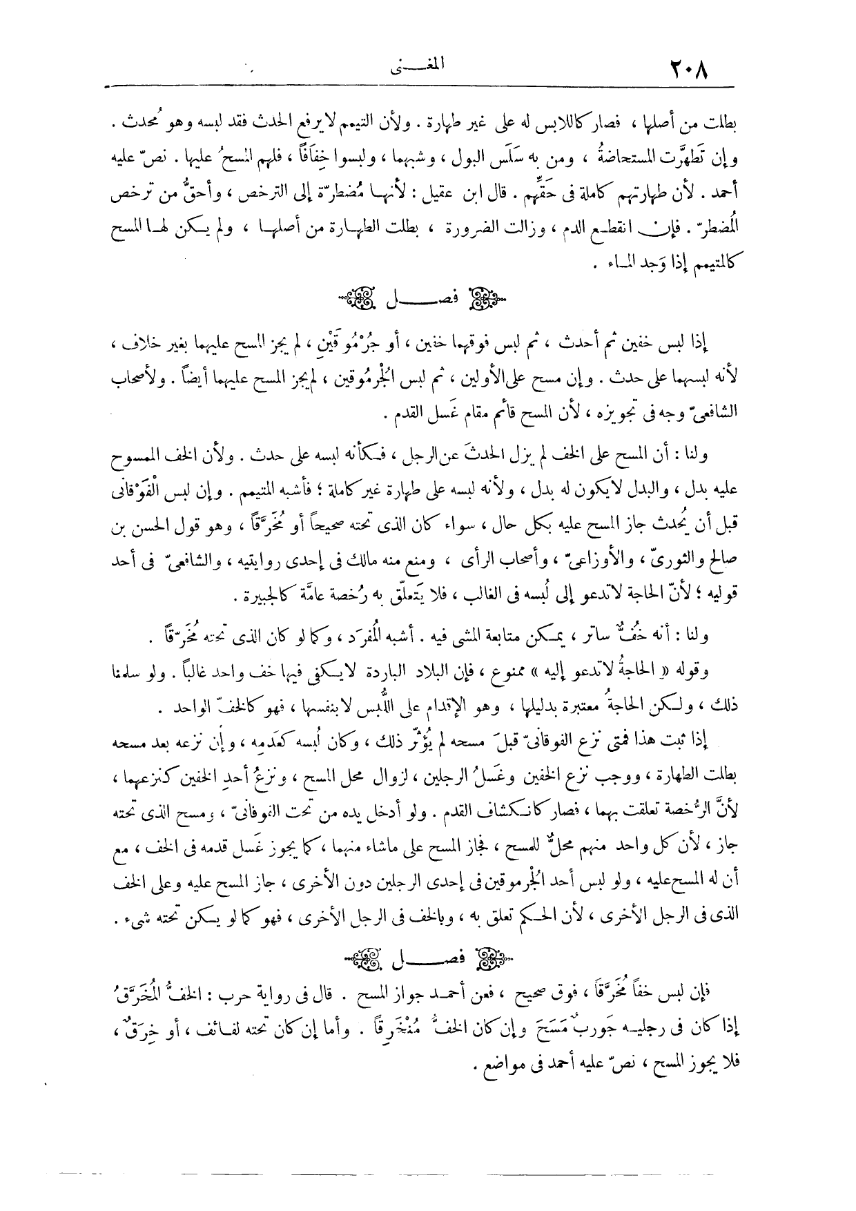 (٤٠٢) فَصْلٌ: وَرُوِيَ عَنْ أَحْمَدَ أَنَّهُ قَالَ: الْمَسْحُ أَفْضَلُ. يَعْنِي مِنْ الْغَسْلِ؛ لِأَنَّ النَّبِيَّ - صَلَّى اللَّهُ عَلَيْهِ وَسَلَّمَ - وَأَصْحَابَهُ إنَّمَا طَلَبُوا الْفَضْلَ. وَهَذَا مَذْهَبُ الشَّافِعِيِّ، وَالْحَكَمِ، وَإِسْحَاقَ؛ لِأَنَّهُ رُوِيَ عَنْ النَّبِيِّ - صَلَّى اللَّهُ عَلَيْهِ وَسَلَّمَ - أَنَّهُ قَالَ: «إنَّ اللَّهَ يُحِبُّ أَنْ يُؤْخَذَ بِرُخَصِهِ» . «وَمَا خُيِّرَ رَسُولُ اللَّهِ - صَلَّى اللَّهُ عَلَيْهِ وَسَلَّمَ - بَيْنَ أَمْرَيْنِ، إلَّا اخْتَارَ أَيْسَرَهُمَا» ؛ وَلِأَنَّ فِيهِ مُخَالَفَةَ أَهْلِ الْبِدَعِ، وَقَدْ رُوِيَ عَنْ سُفْيَانَ الثَّوْرِيِّ أَنَّهُ قَالَ لِشُعَيْبِ بْنِ حَرْبٍ: لَا يَنْفَعُك مَا كَتَبْت، حَتَّى تَرَى الْمَسْحَ عَلَى الْخُفَّيْنِ أَفْضَلَ مِنْ الْغَسْلِ. وَرَوَى حَنْبَلٌ، عَنْ أَحْمَدَ، أَنَّهُ قَالَ: كُلُّهُ جَائِزٌ، الْمَسْحُ وَالْغَسْلُ، مَا فِي قَلْبِي مِنْ الْمَسْحِ شَيْءٌ، وَلَا مِنْ الْغَسْلِ.
