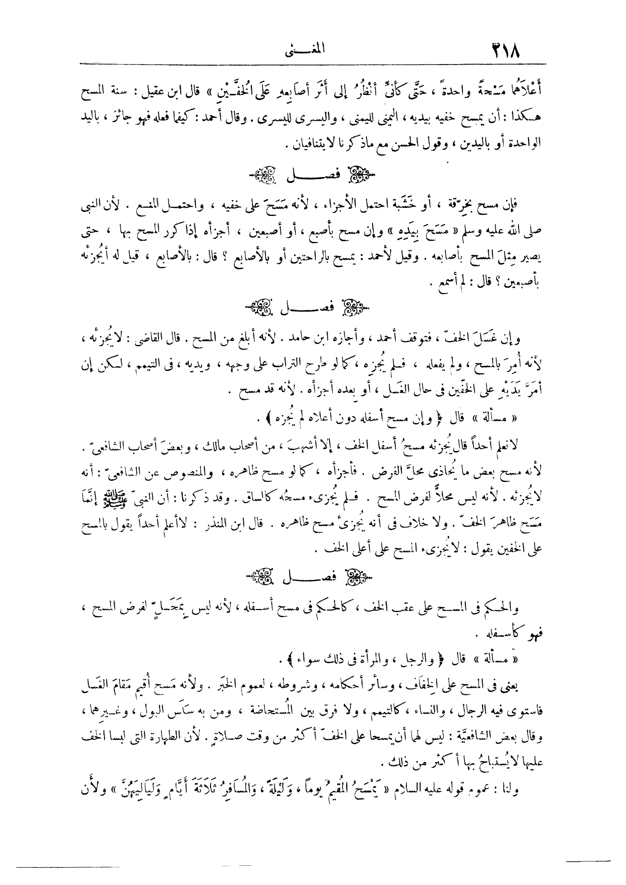 (٤٣٦) فَصْلٌ: وَالْحُكْمُ فِي الْمَسْحِ عَلَى عَقِبِ الْخُفِّ كَالْحُكْمِ فِي مَسْحِ أَسْفَلِهِ؛ لِأَنَّهُ لَيْسَ بِمَحَلٍّ لِفَرْضِ الْمَسْحِ، فَهُوَ كَأَسْفَلِهِ