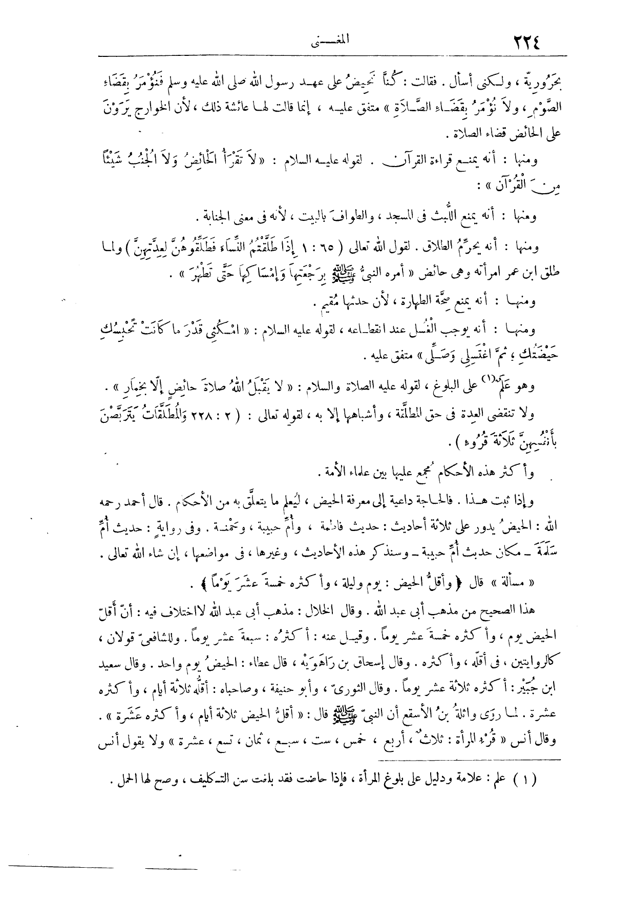 وَإِذَا ثَبَتَ هَذَا، فَالْحَاجَةُ دَاعِيَةٌ إلَى مَعْرِفَةِ الْحَيْضِ، لِيُعْلَمَ مَا يَتَعَلَّقُ بِهِ مِنْ الْأَحْكَامِ. قَالَ أَحْمَدُ، - رَحِمَهُ اللَّهُ -: الْحَيْضُ يَدُورُ عَلَى ثَلَاثَةِ أَحَادِيثَ: حَدِيثِ فَاطِمَةَ، وَأُمِّ حَبِيبَةَ، وَحَمْنَةَ. وَفِي رِوَايَةٍ: حَدِيثِ أُمِّ سَلَمَةَ. مَكَانَ حَدِيثِ أُمِّ حَبِيبَةَ. وَسَنَذْكُرُ هَذِهِ الْأَحَادِيثَ وَغَيْرَهَا فِي مَوَاضِعِهَا، إنْ شَاءَ اللَّهُ تَعَالَى.
